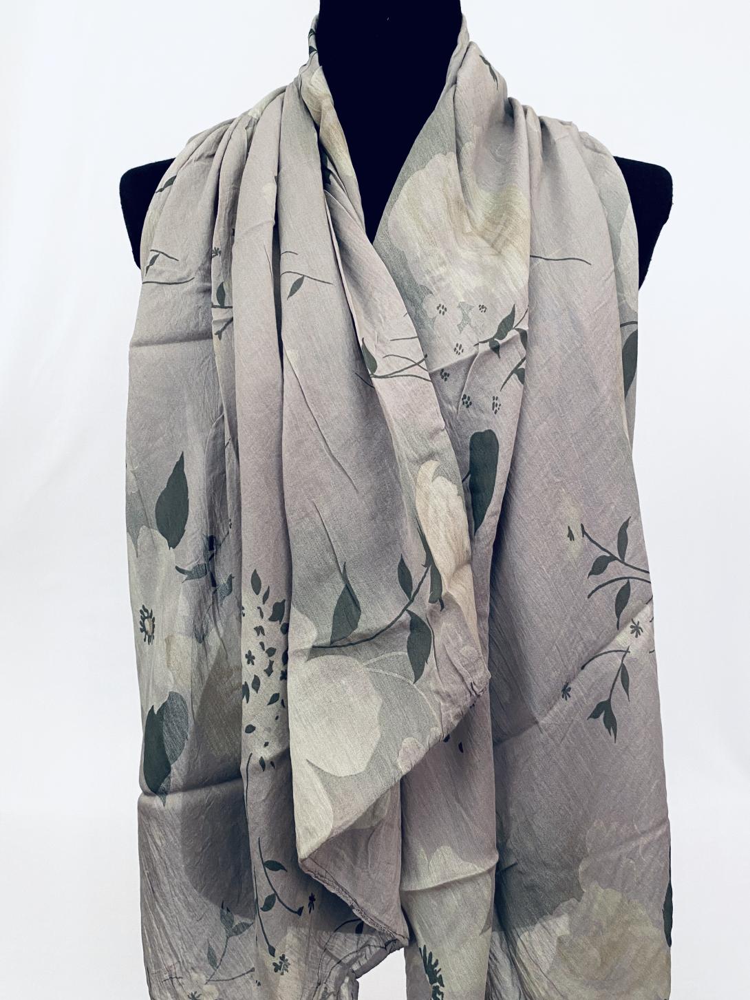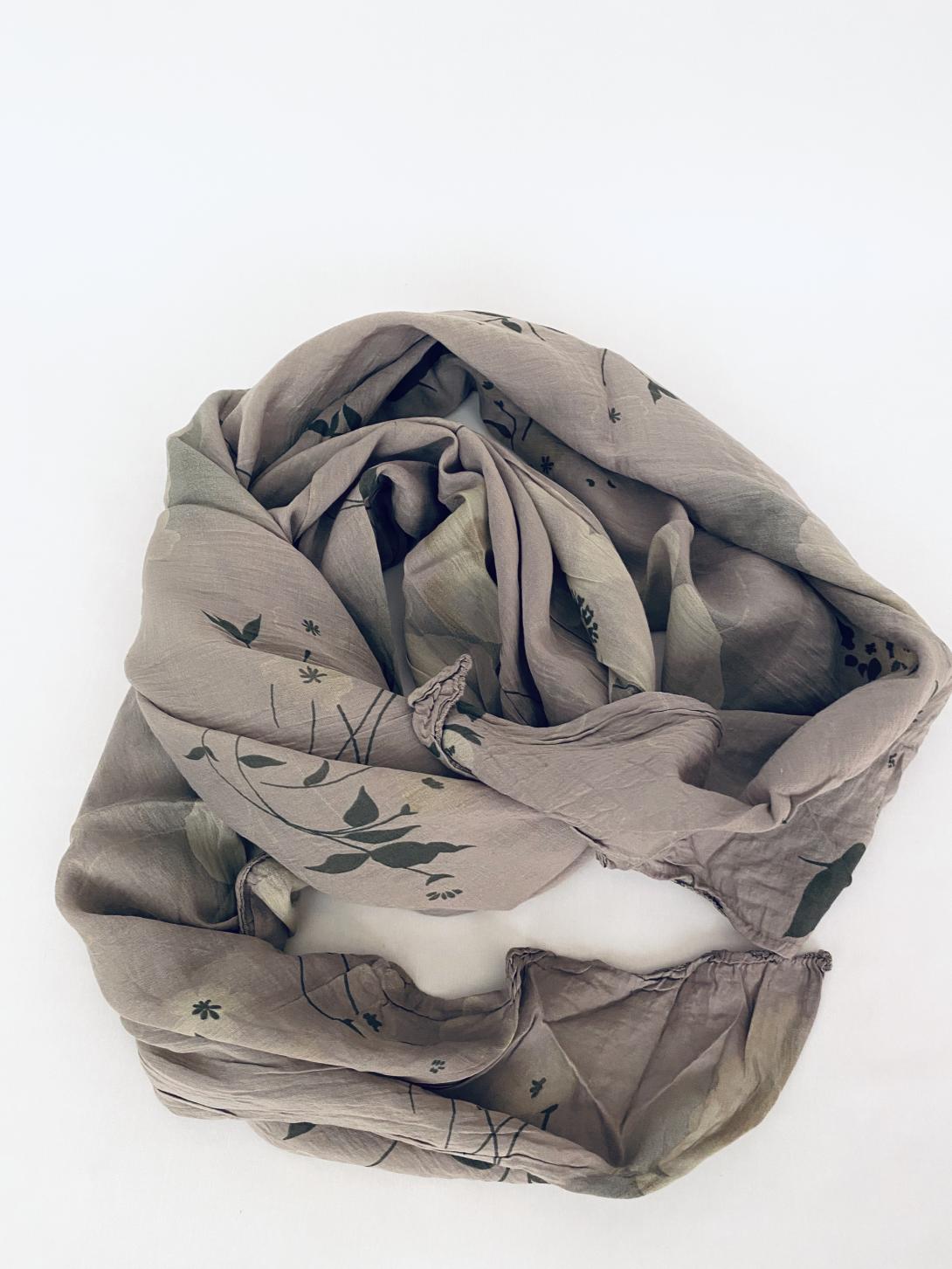 Асимметричный шарф в цвете фанго с цветочным принтом.