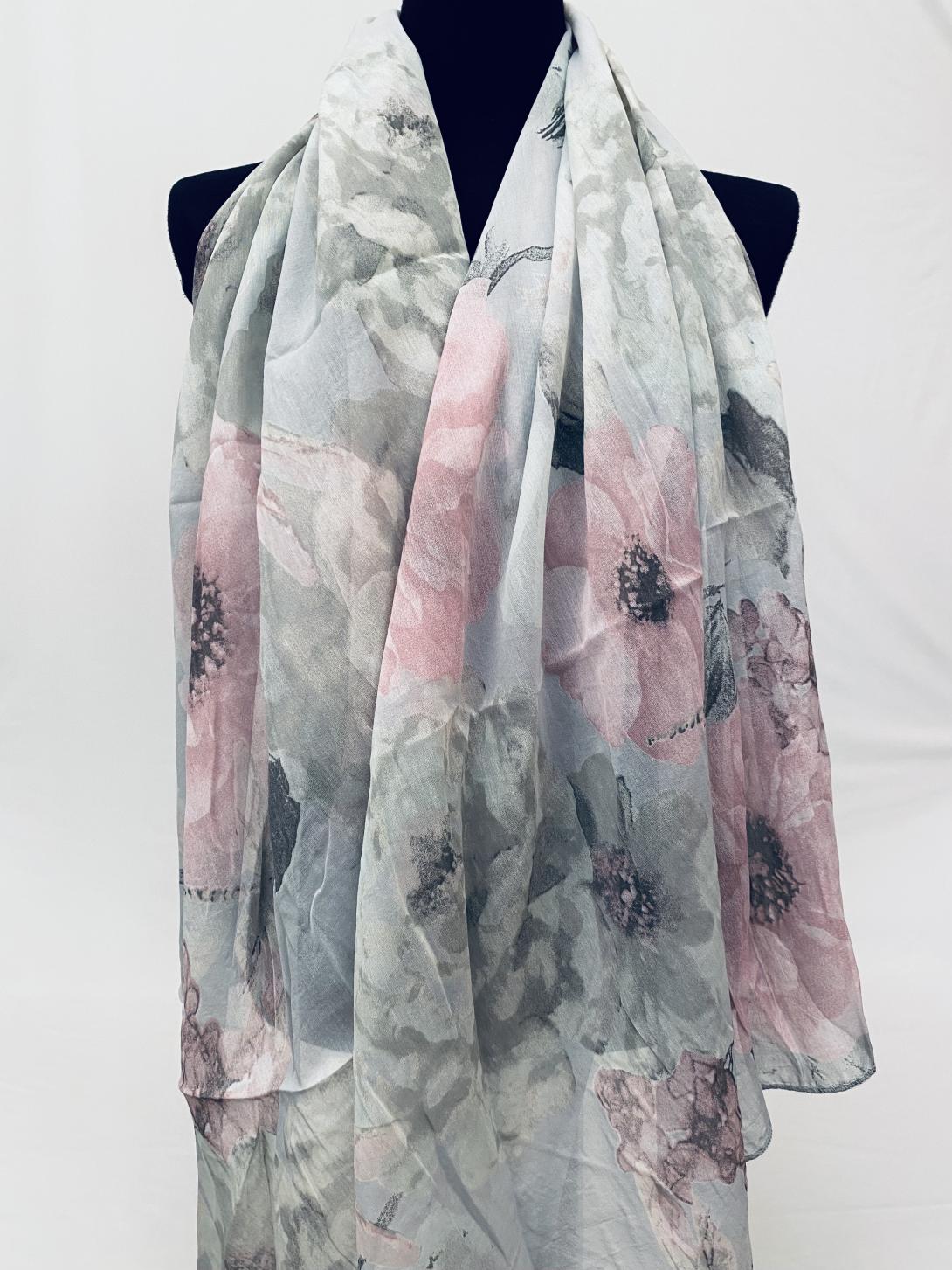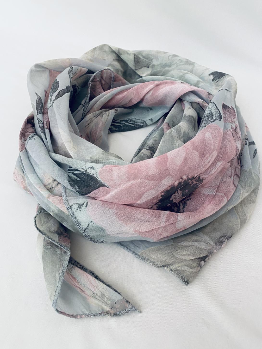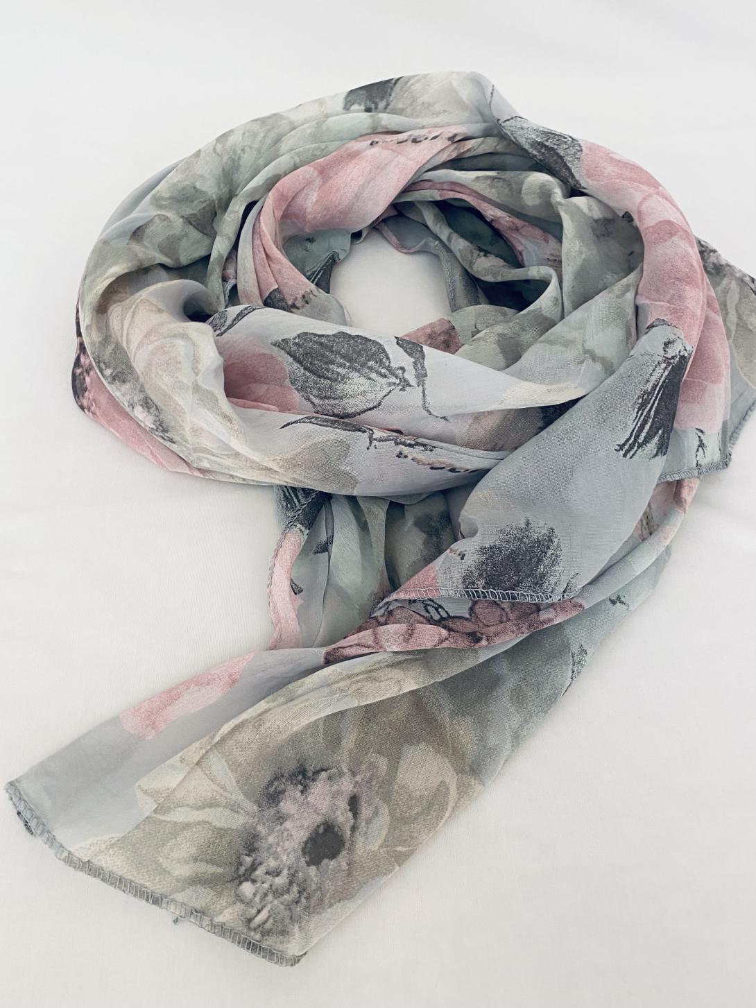 Шарф асимметричный тонкий с цветочным принтом
