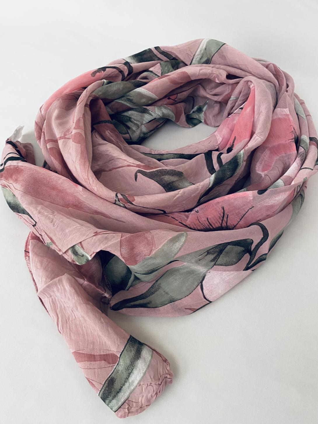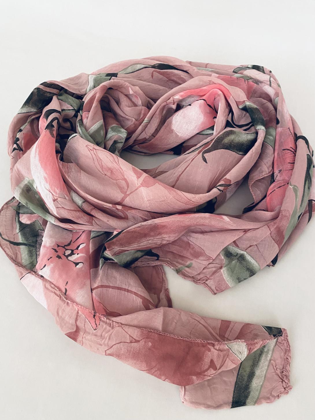 Шарф асимметричный тонкий с цветочным принтом