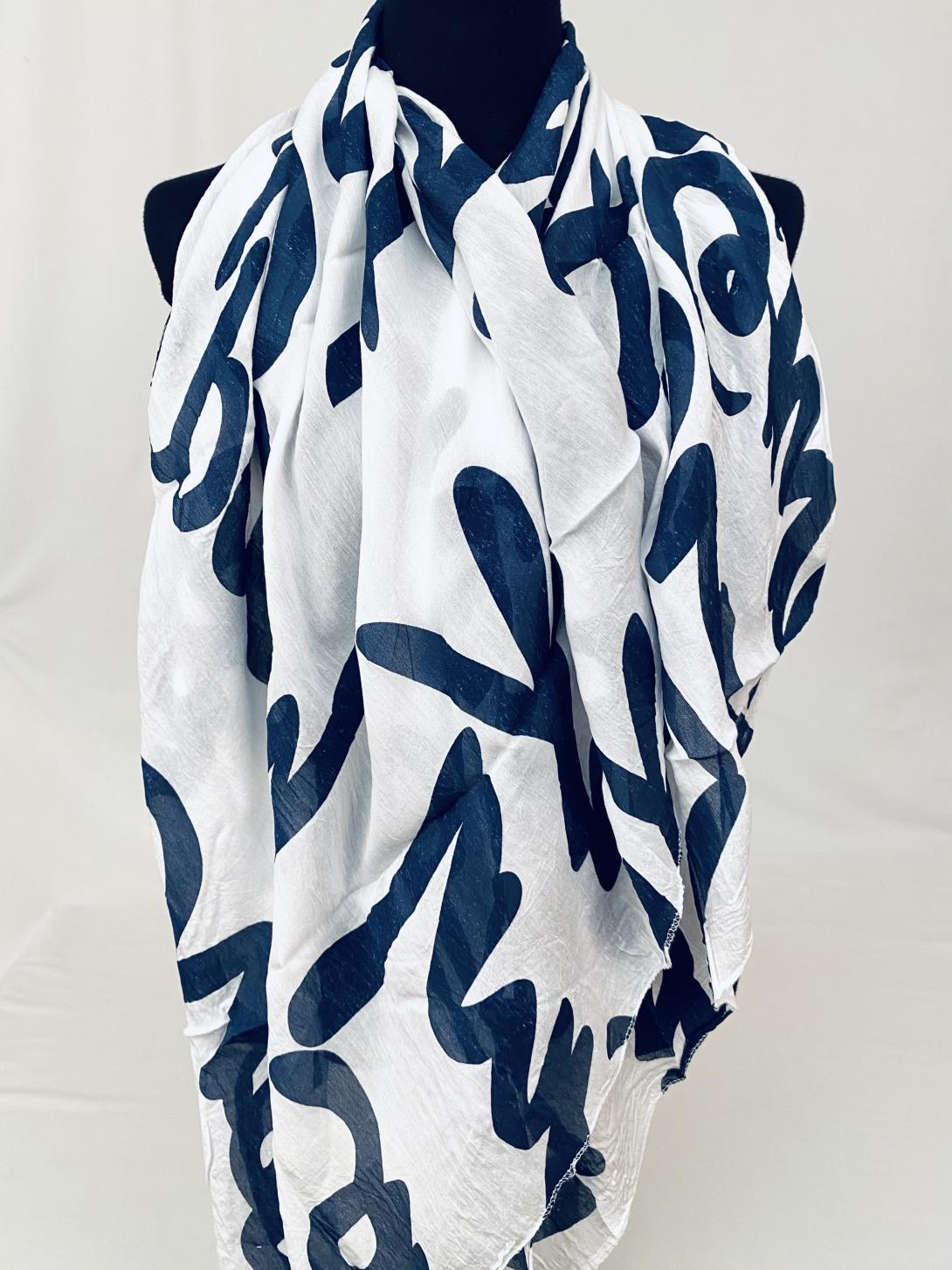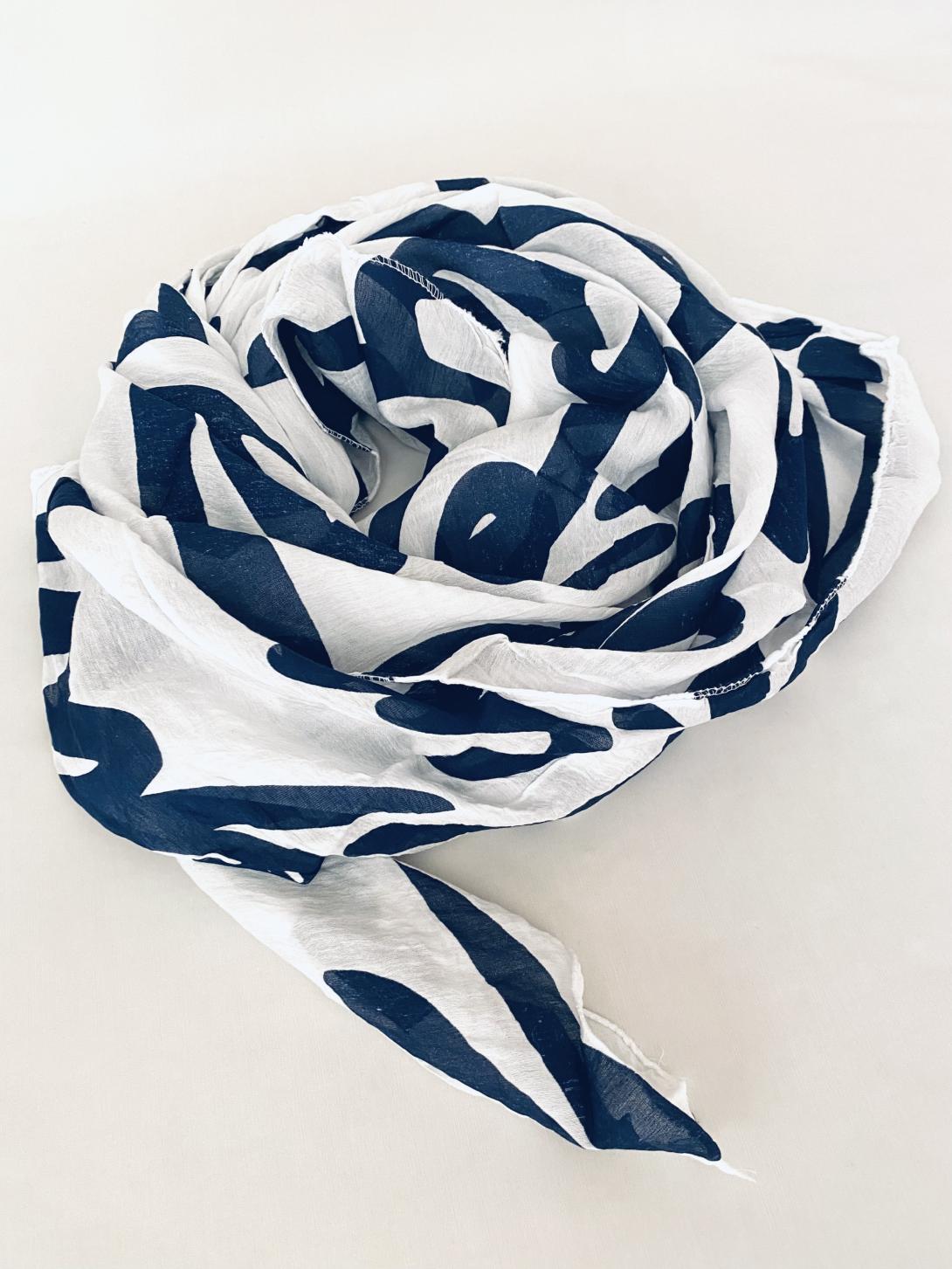 Шарф асимметричный тонкий с абстрактным принтом