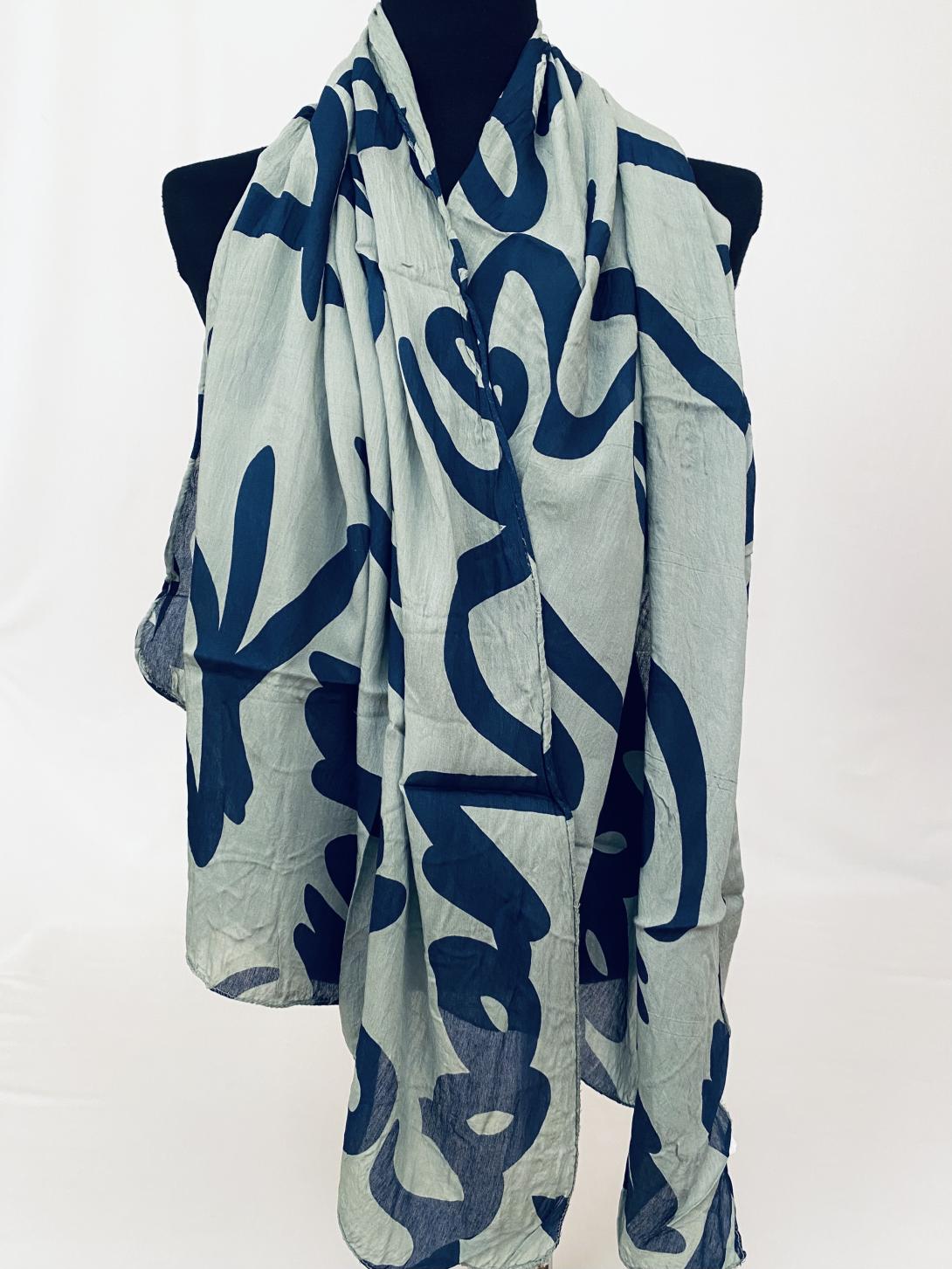 Шарф асимметричный тонкий с абстрактным принтом