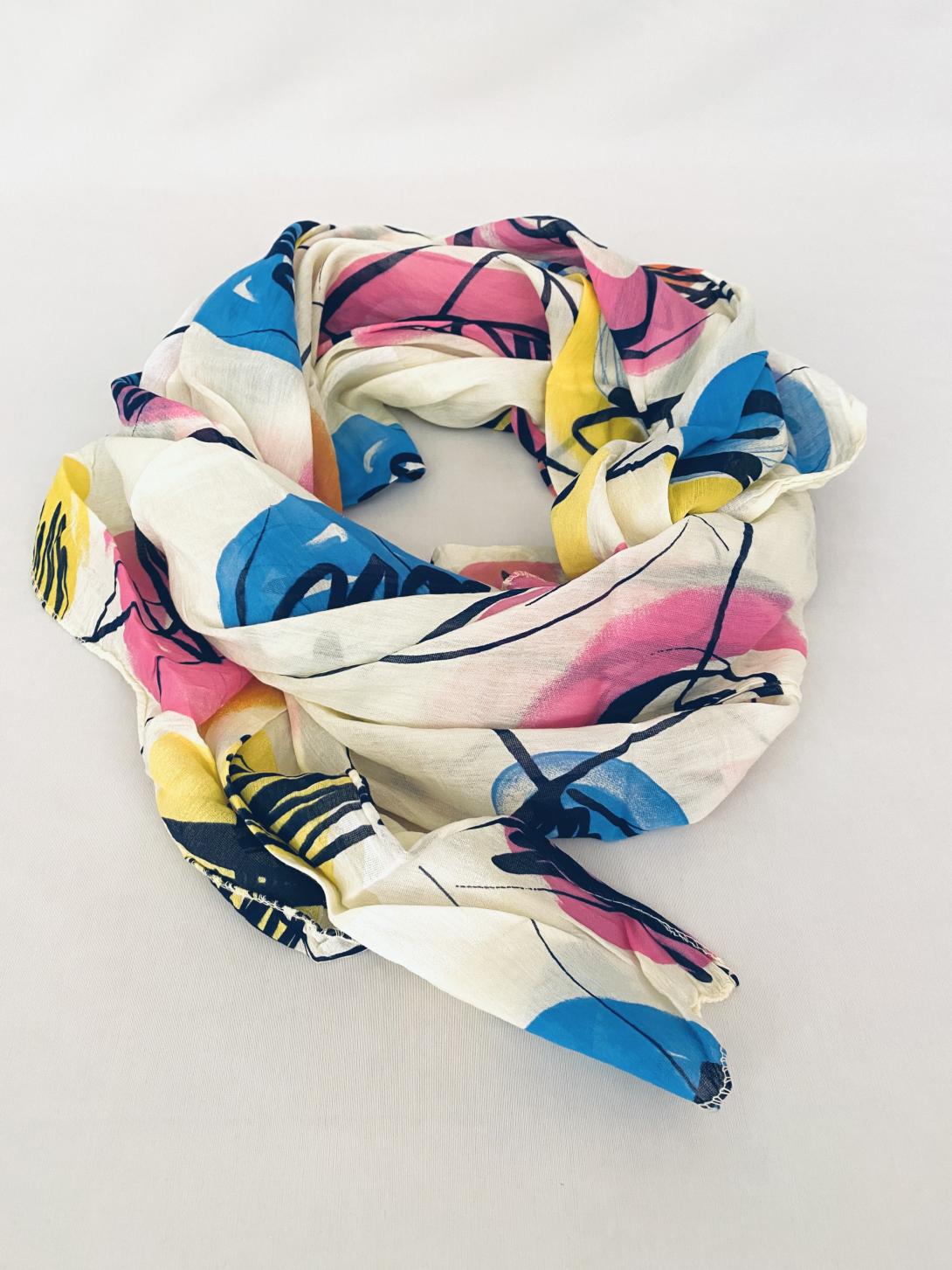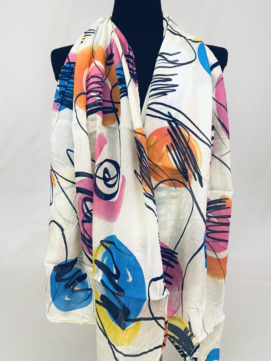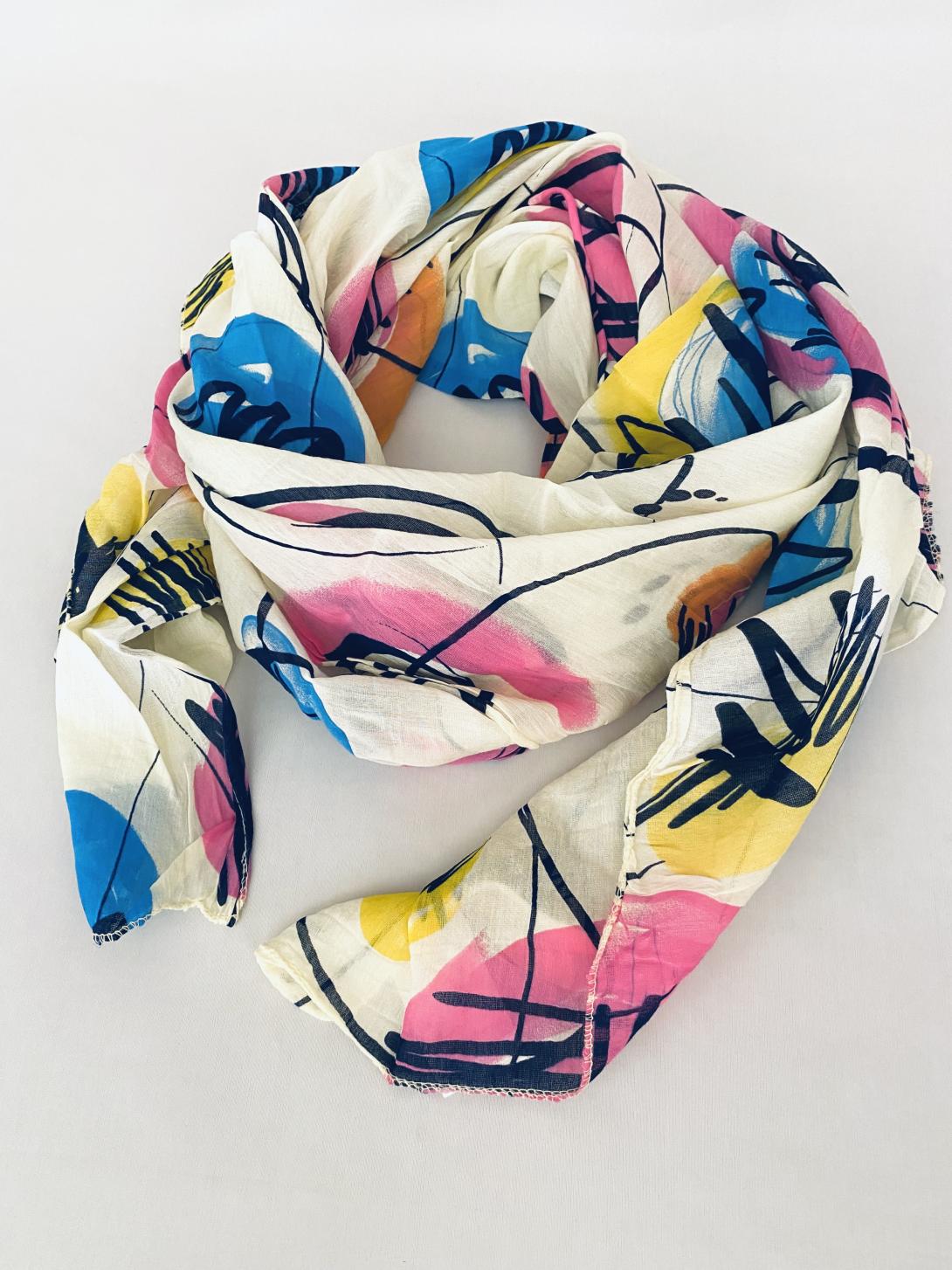 Шарф асимметричный тонкий с абстрактным принтом