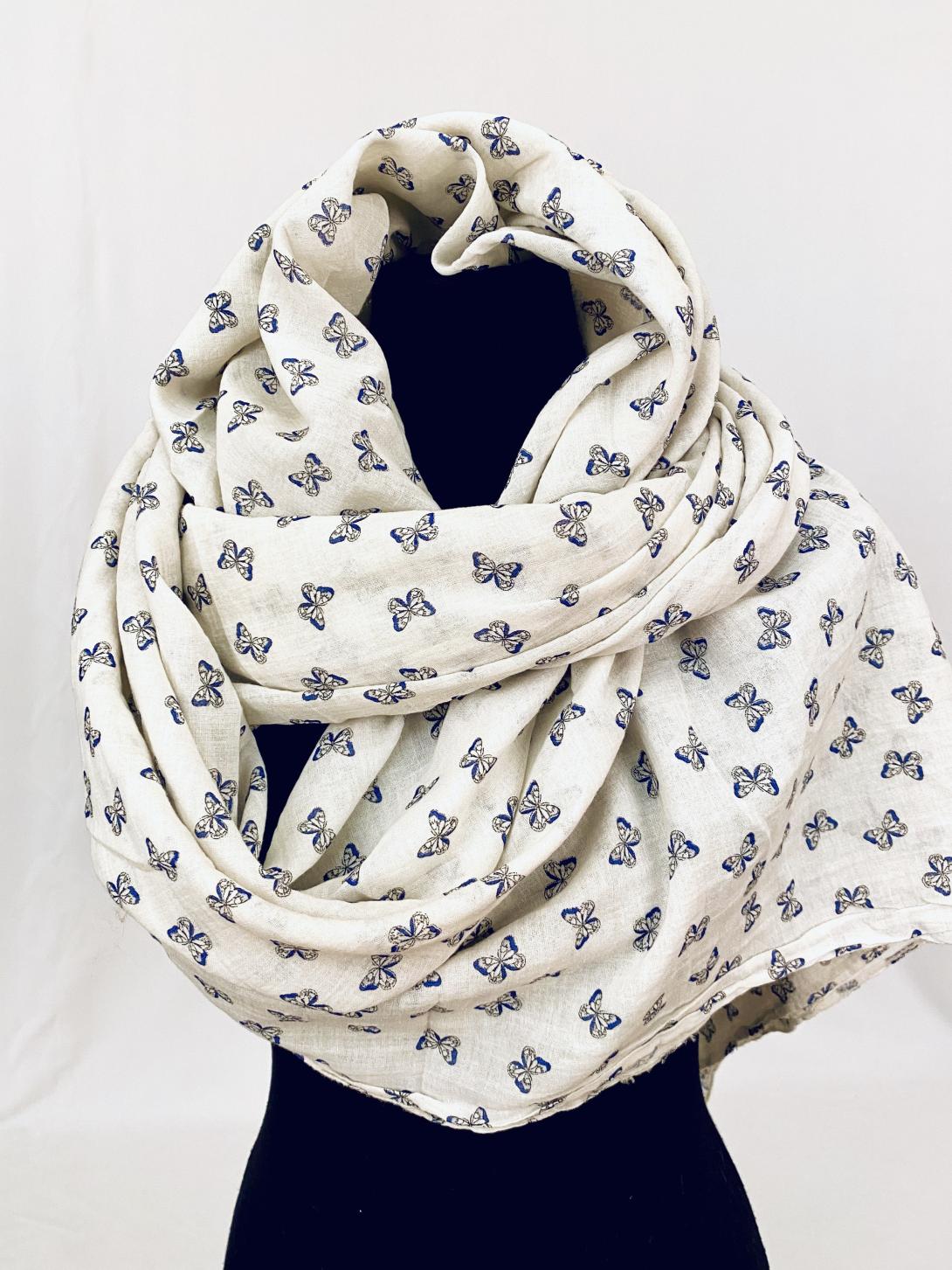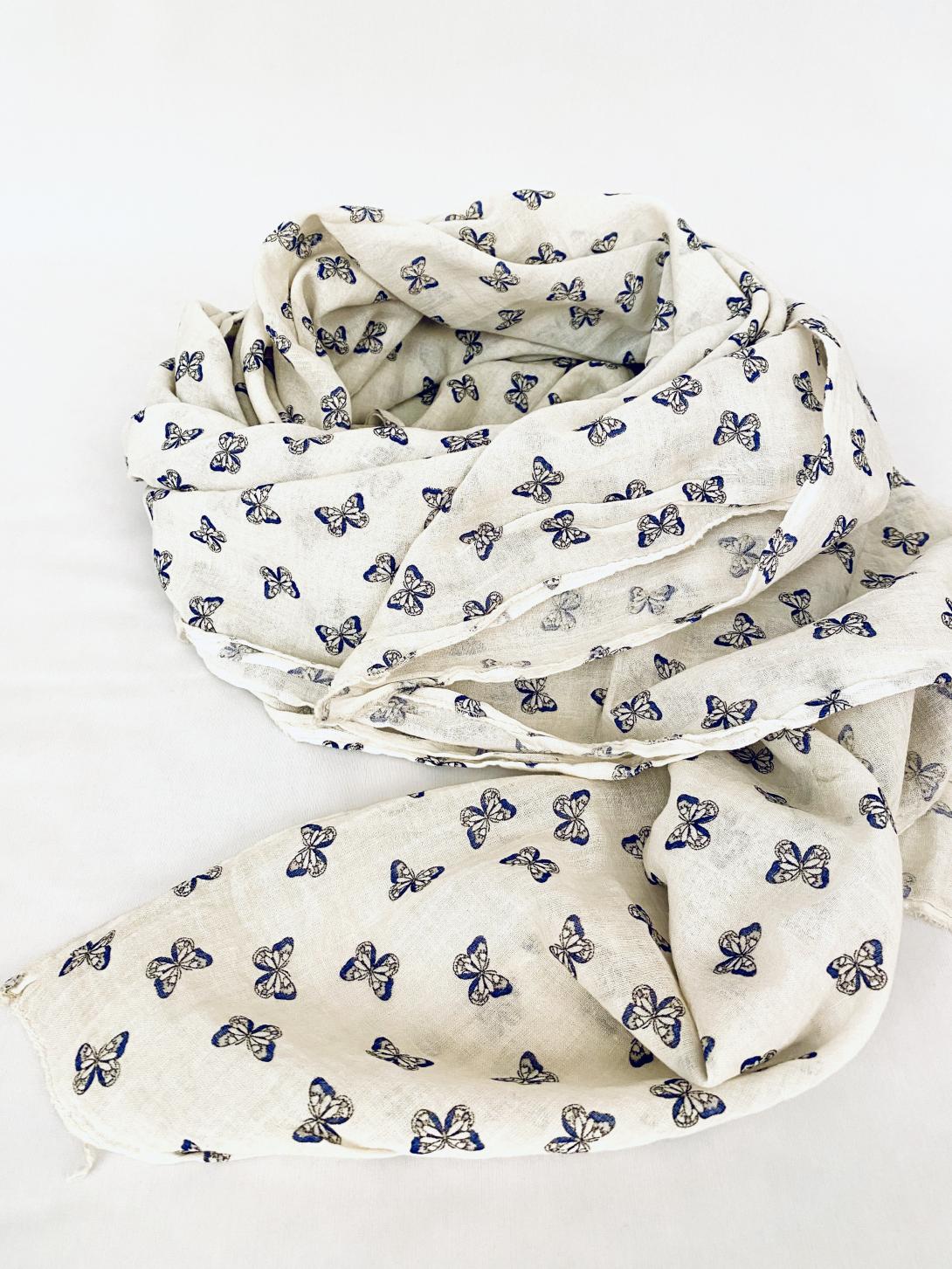 Оригинальный принт в виде небольших бабочек делает этот аксессуар стильным и модным.