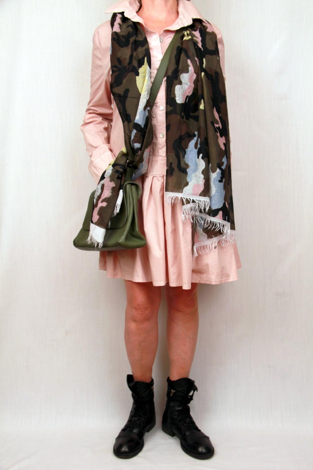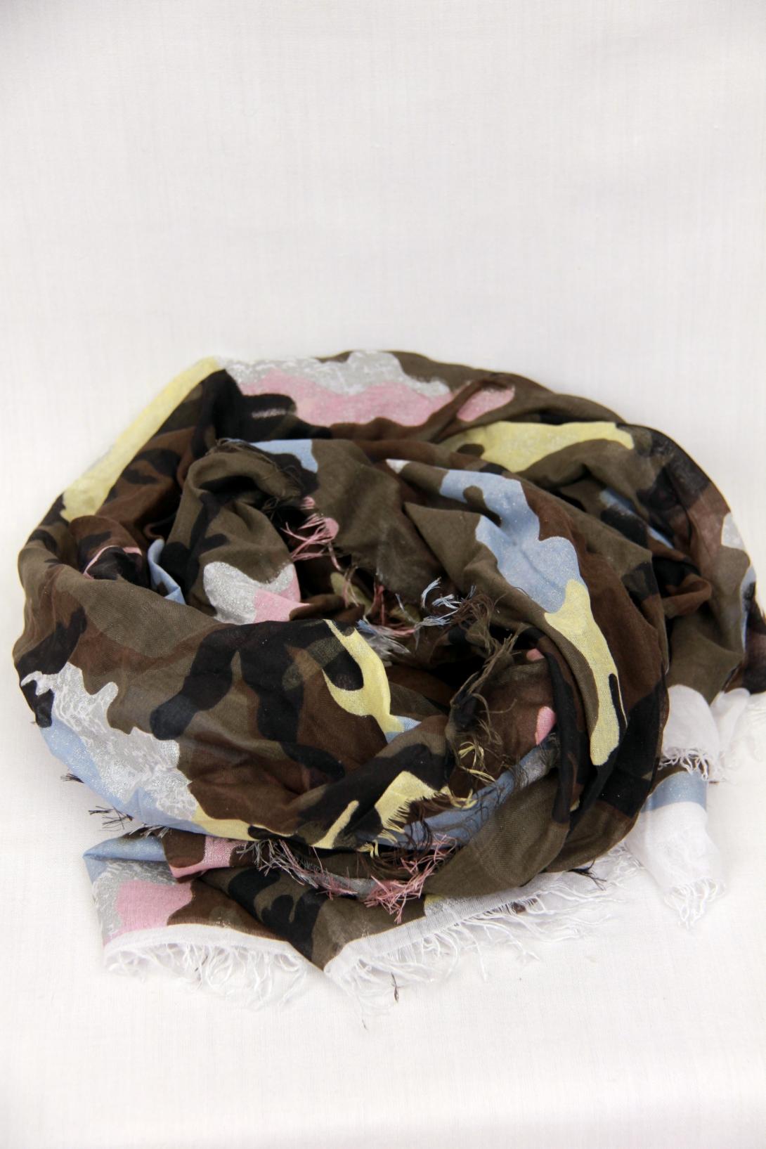 Этот красивый шарф-палантин выполнен в стиле милитари, что придает ему особую изюминку. Оригинальное сочетание цветов и небольшой блеск делают его особенно эффектным.