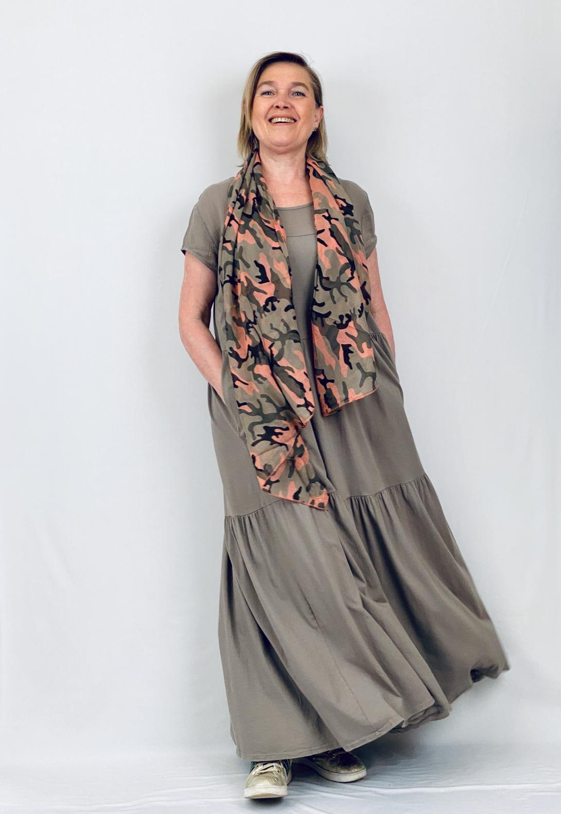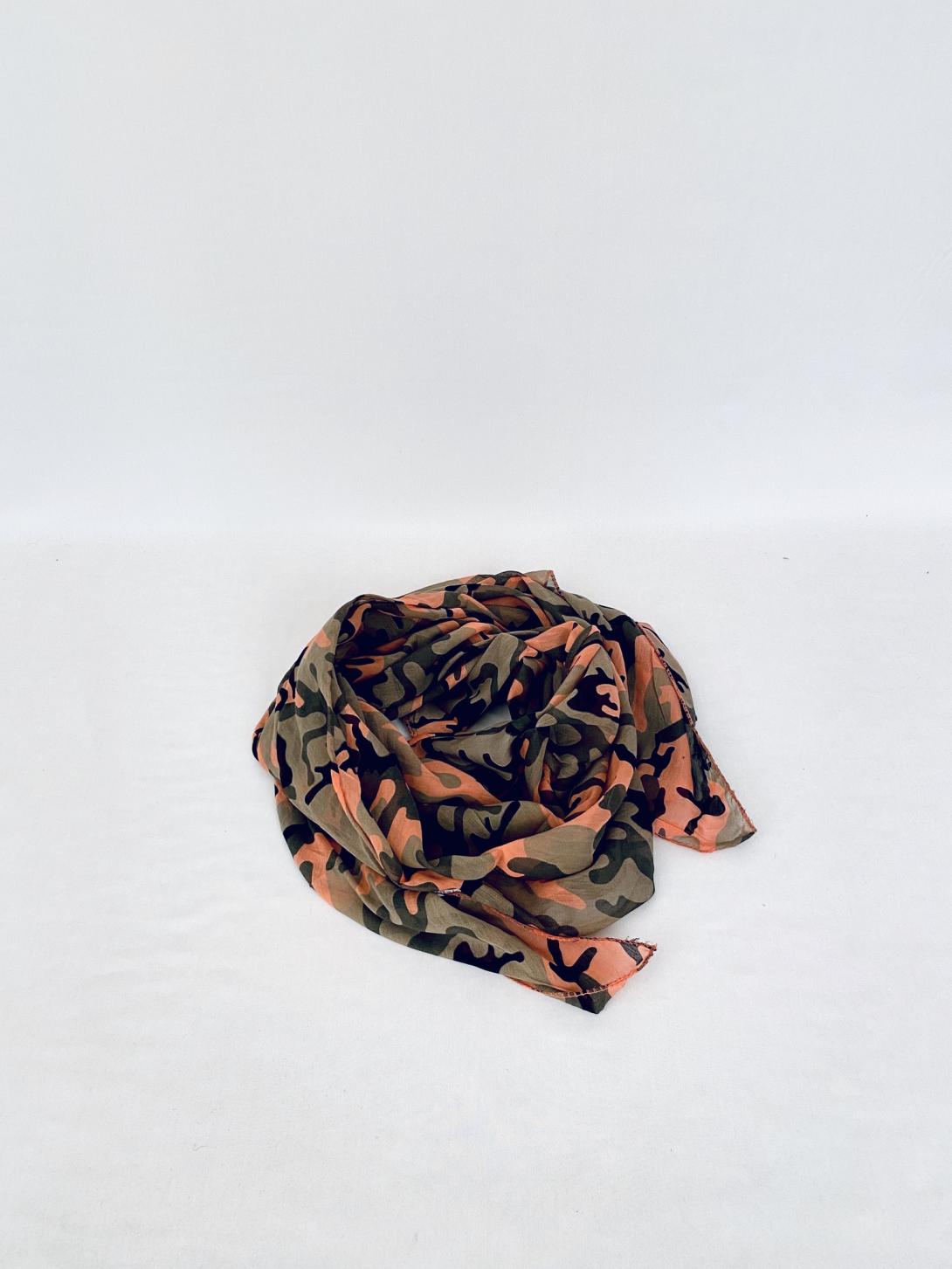 Итальянский красивый шарф, стиль милитари с коралловым цветом. Шикарное сочетание цветов.Женский ассиметричный шарфик Kikka Mia - это стильный и элегантный аксессуар. Он выполнен из 80 % хлопка и 20 % натурального шелка, что делает его мягким и приятным на ощупь. Шарфик имеет мелкий флористический и абстрактный принт, который придает ему оригинальность и неповторимость.