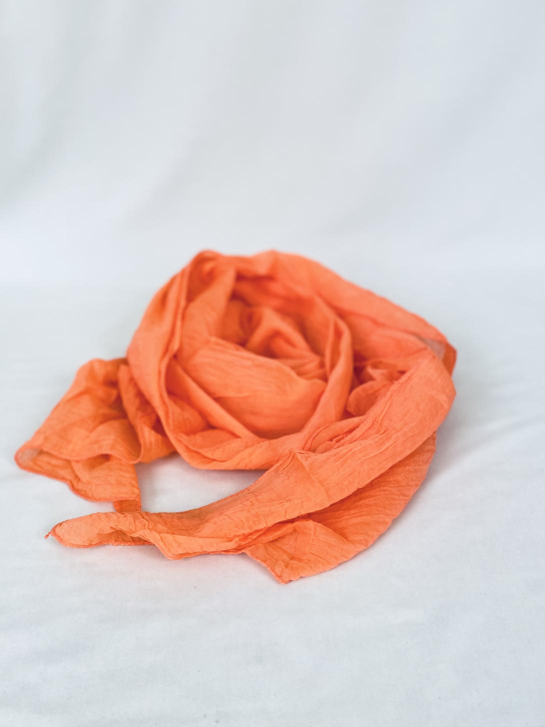 Однотонный коралловый шарф необходимо иметь в гардеробе.
