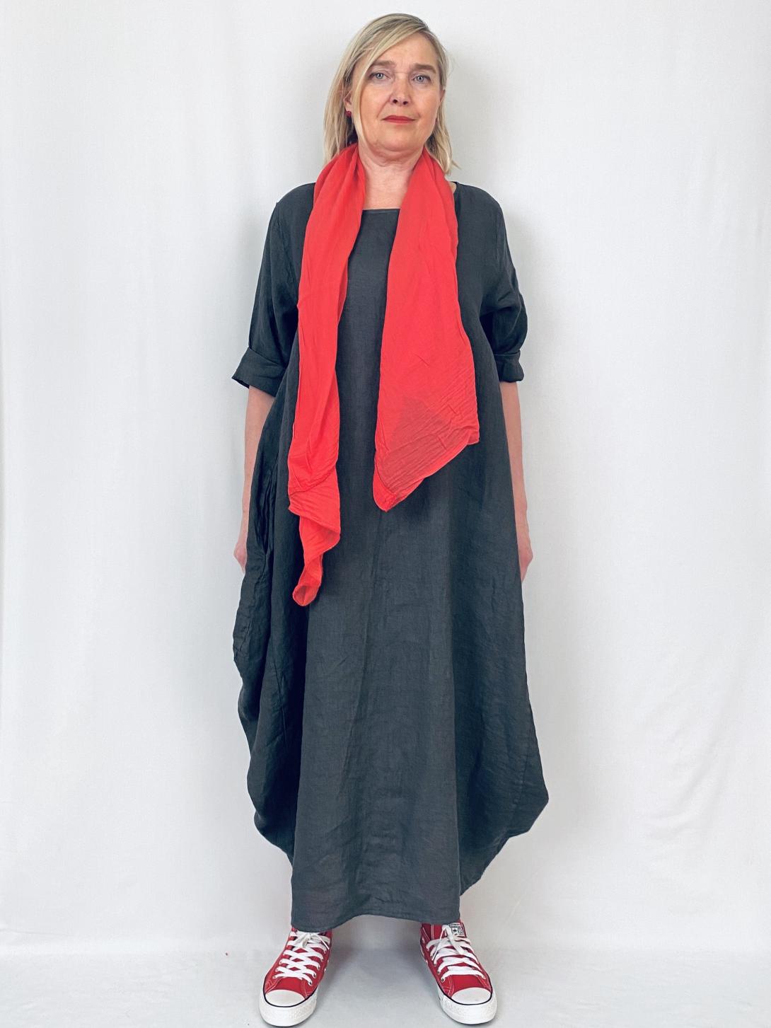Асимметричный дизайн шарфа придает ему оригинальность и неповторимость.
