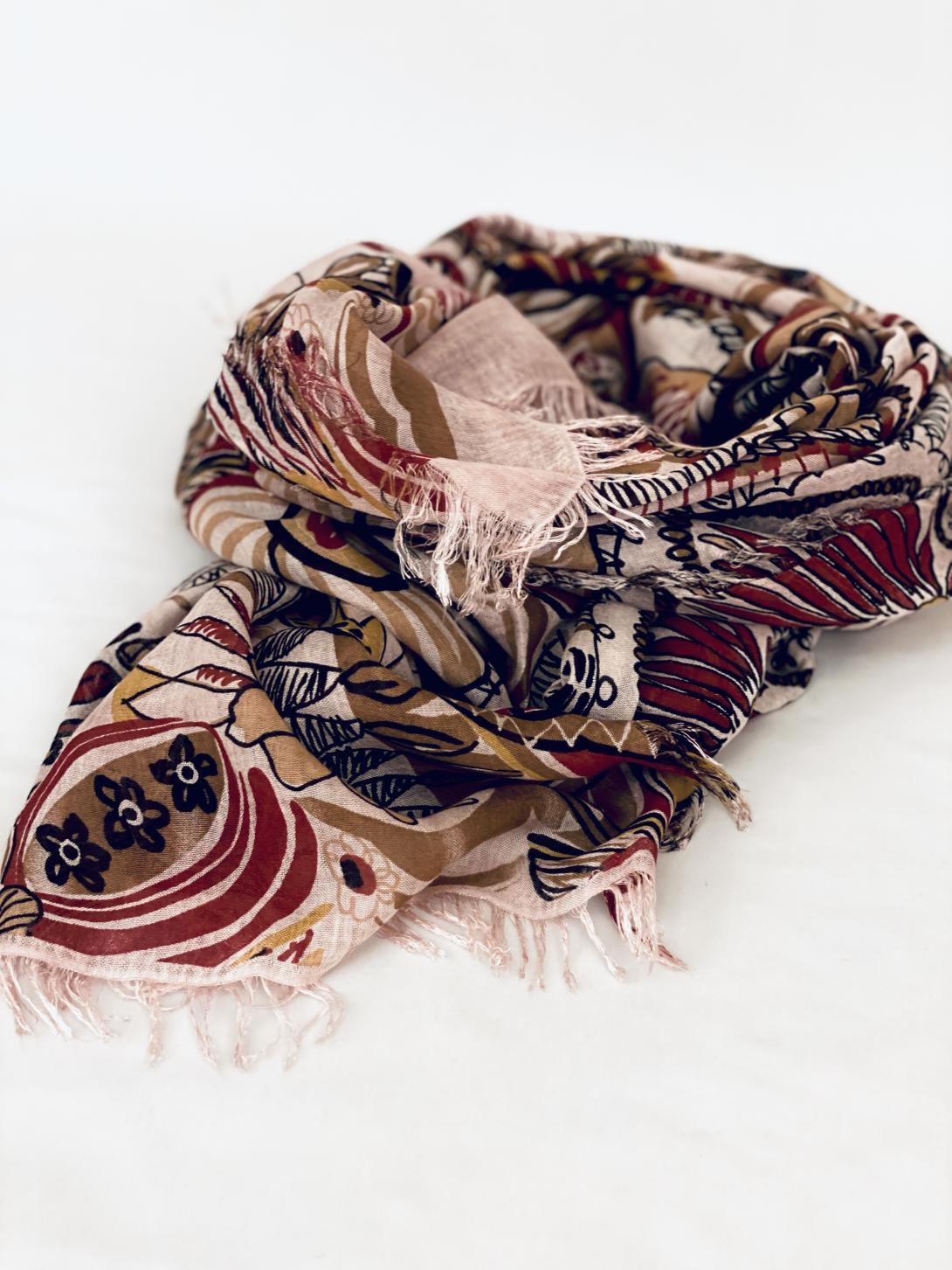 Палантин Kikka Mia в розово-бордовой цветовой гамме станет отличным дополнением к вашему гардеробу.