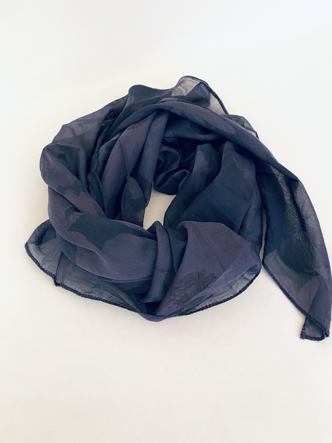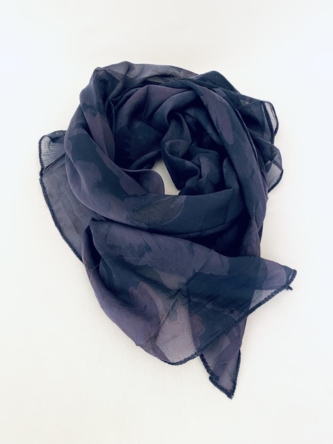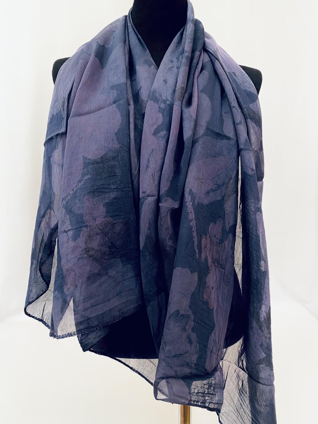 Стильный шарф тёмно синий с еле заметными цветами. Шарф асимметричный производство ИТалия