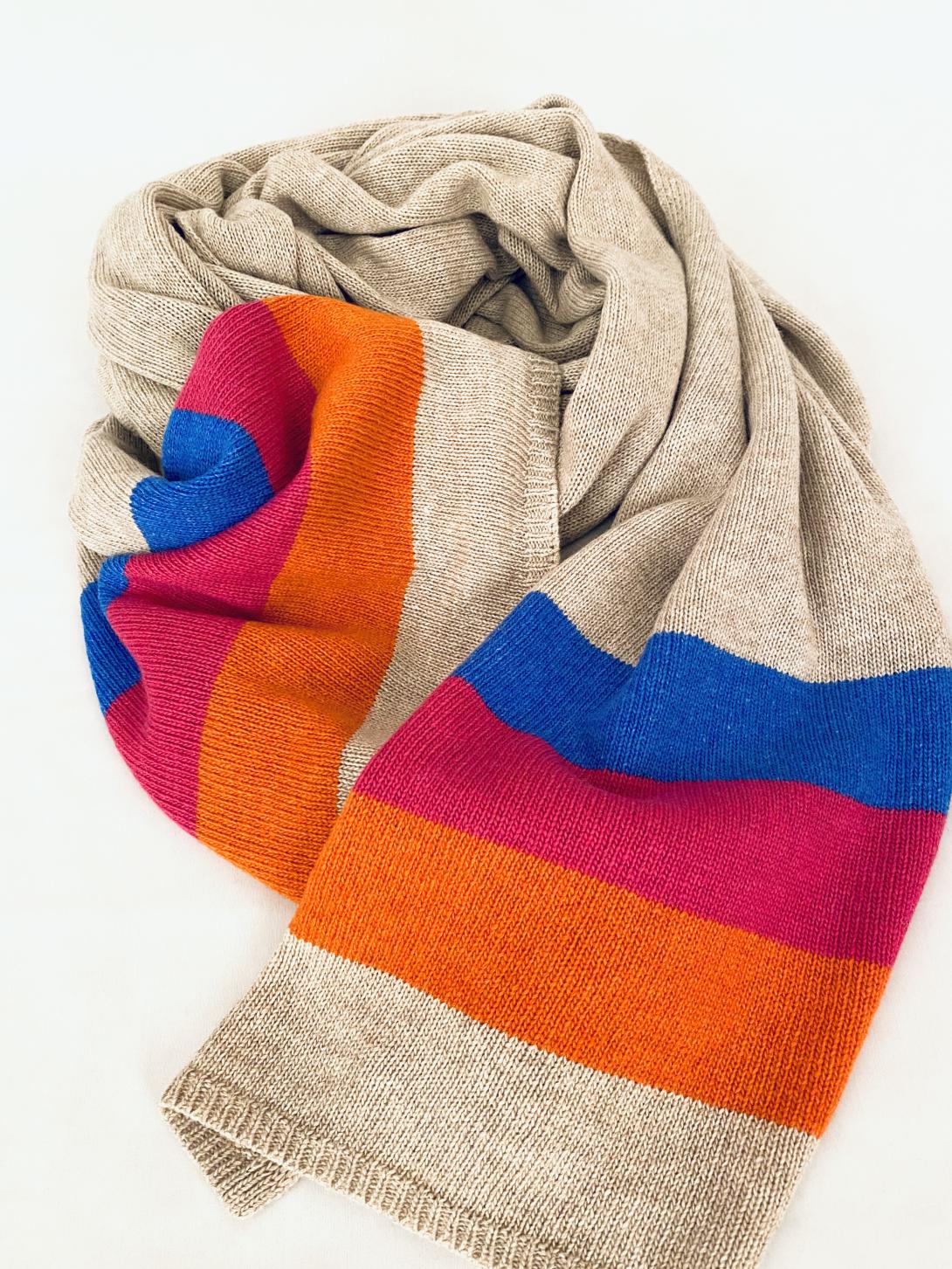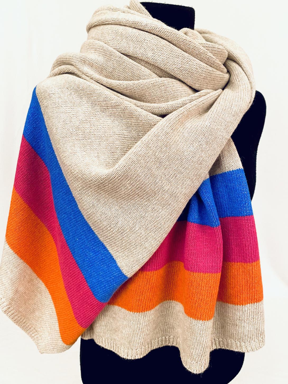 Теплый и уютный палантин Kikka Mia станет отличным дополнением к вашему гардеробу. Бежевый цвет с яркими полосками придаст вашему образу изысканность и элегантность.