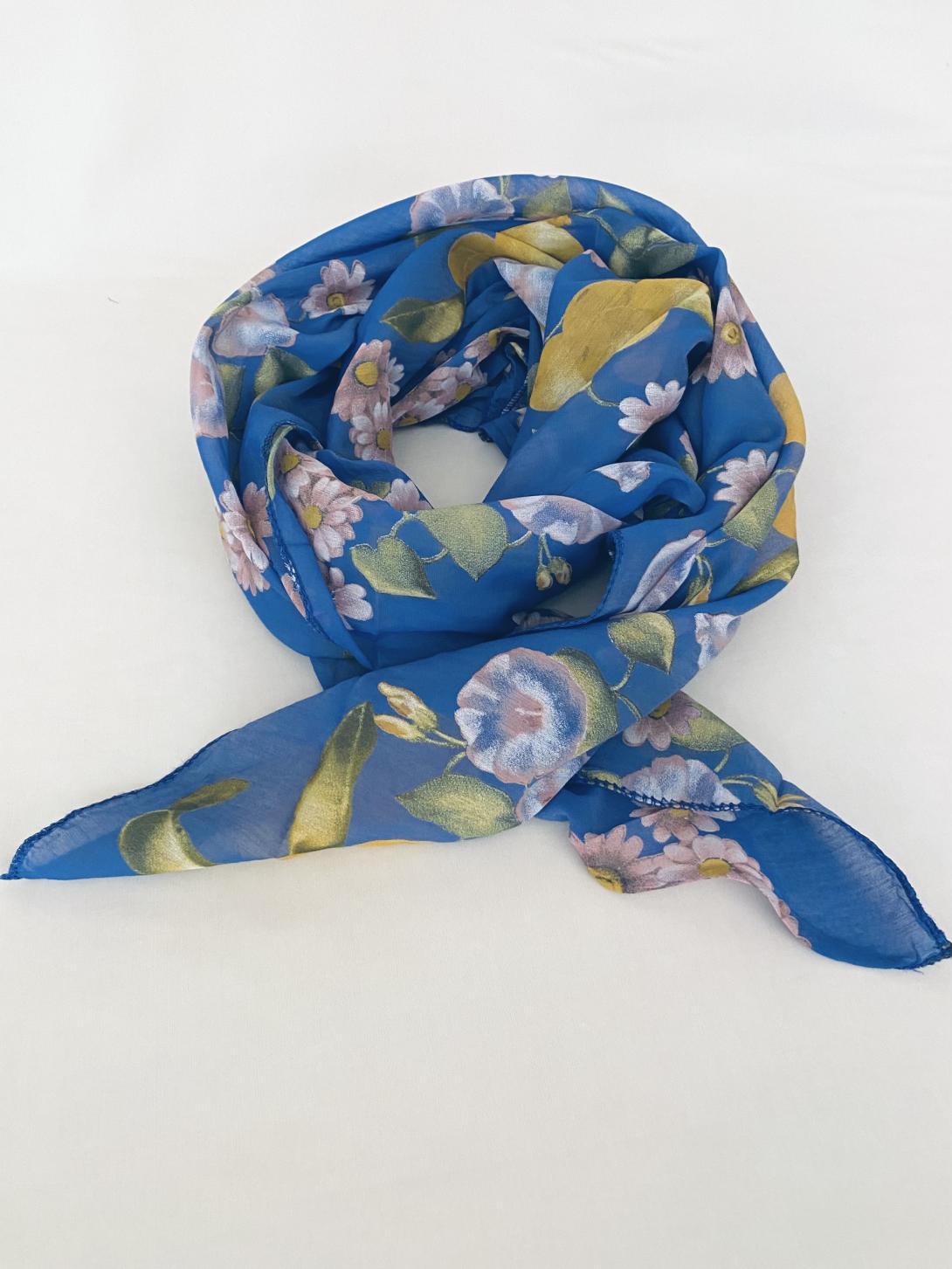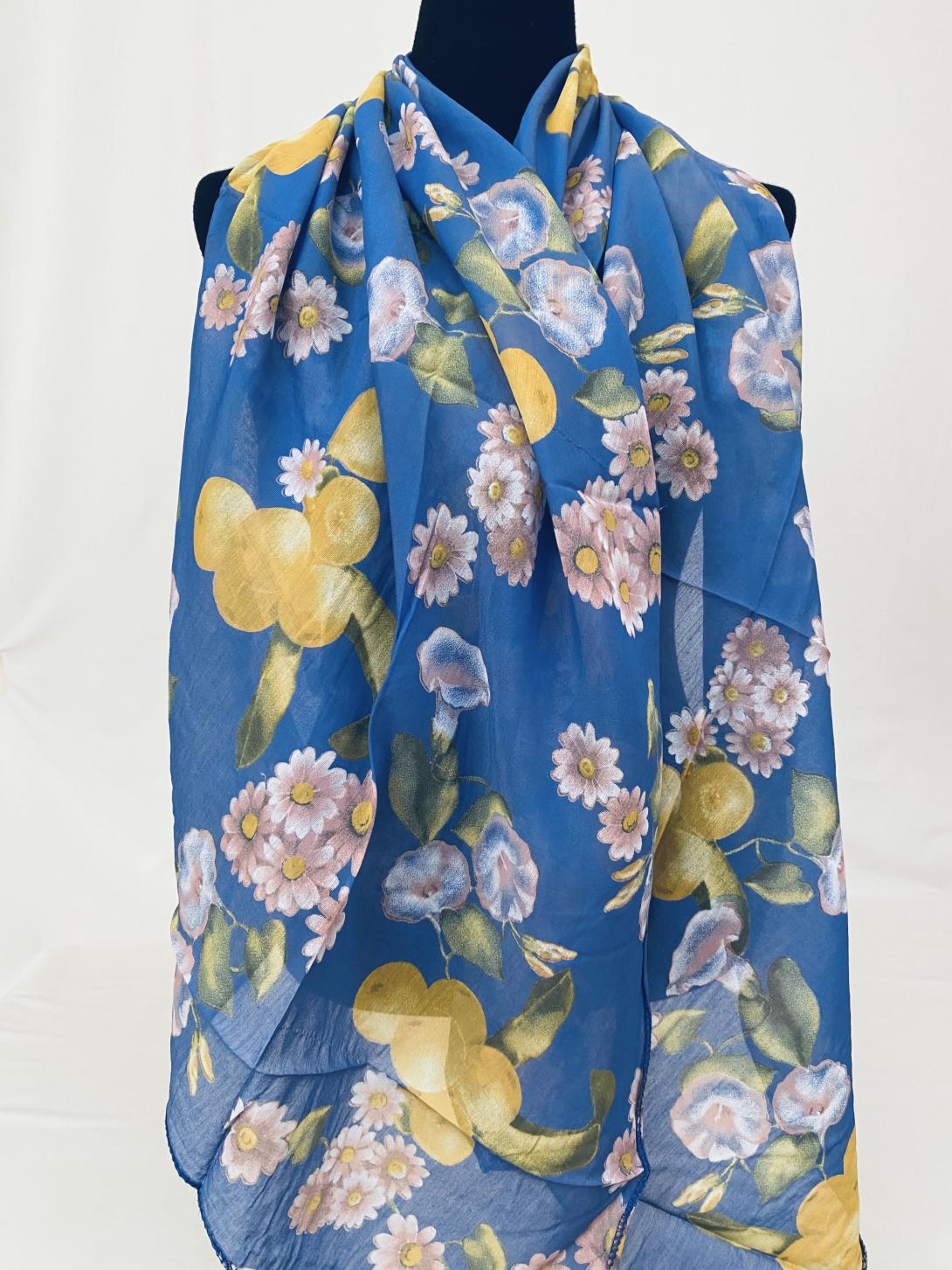 Шарф асимметричный тонкий с цветочным принтом