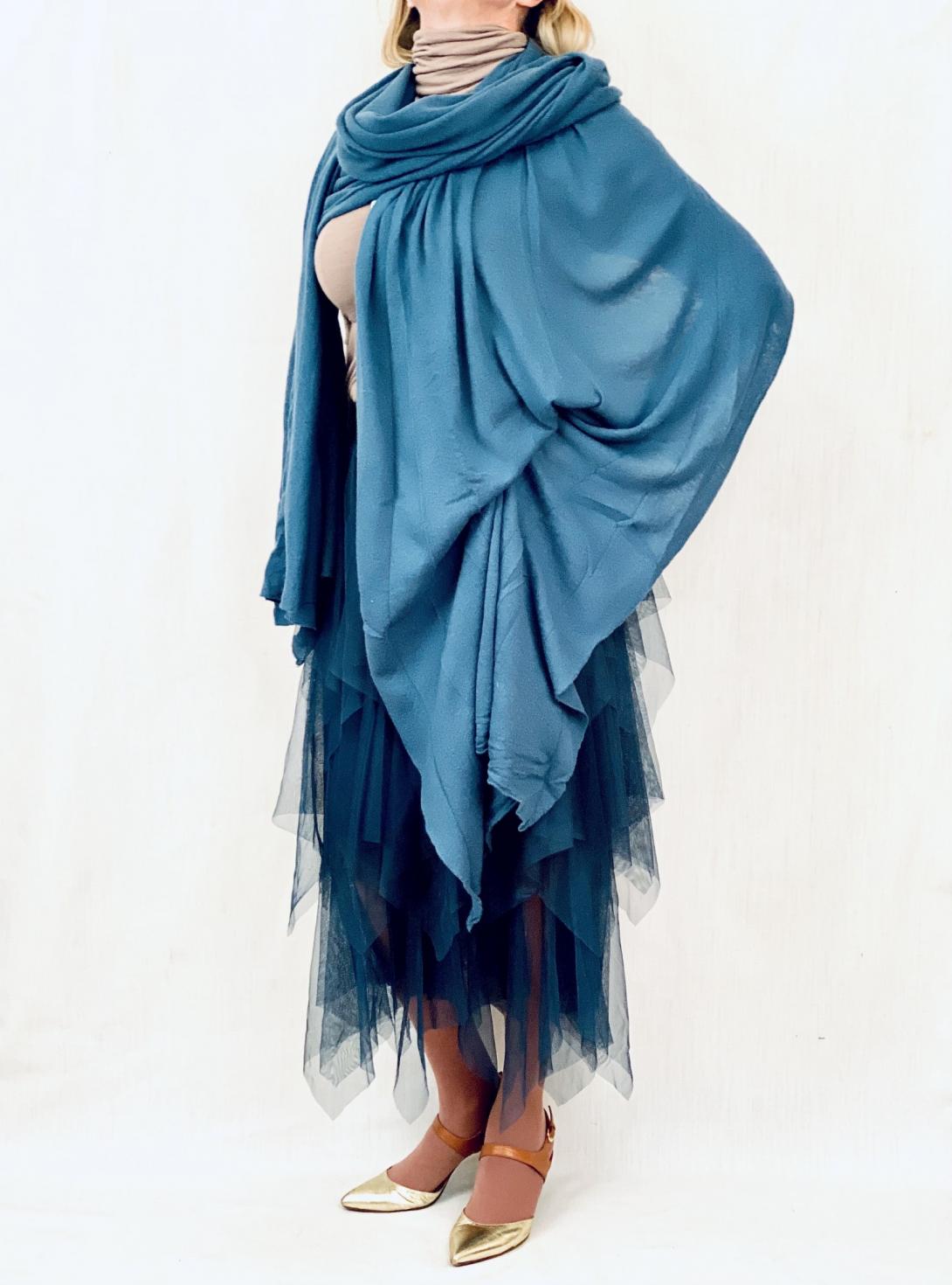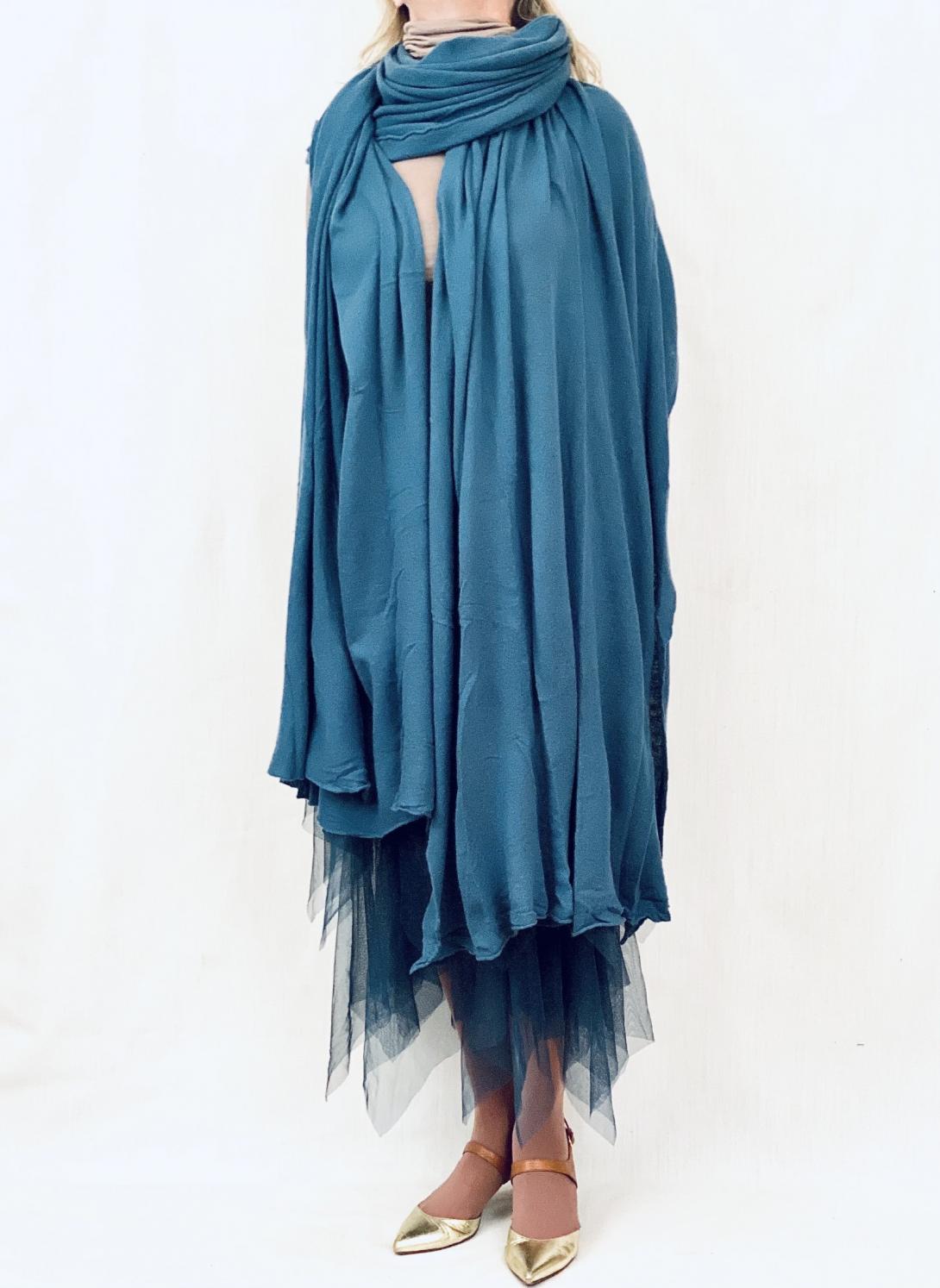 Эффектная богатая шаль бирюзового цвета .Шаль легко драпируется. Производство Италия бренд Manila Gracee.