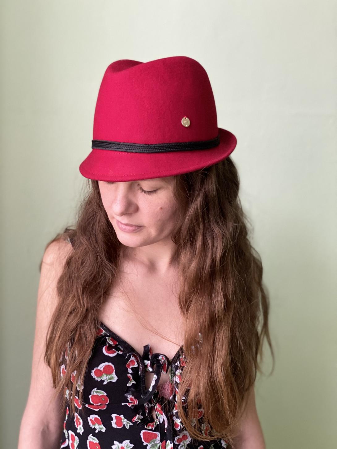 Яркая фетровая шляпа с небольшими полями. шляпа в красном цвете смотрится особенно выразительно. Шляпка от Ит.бренда LIU-JO