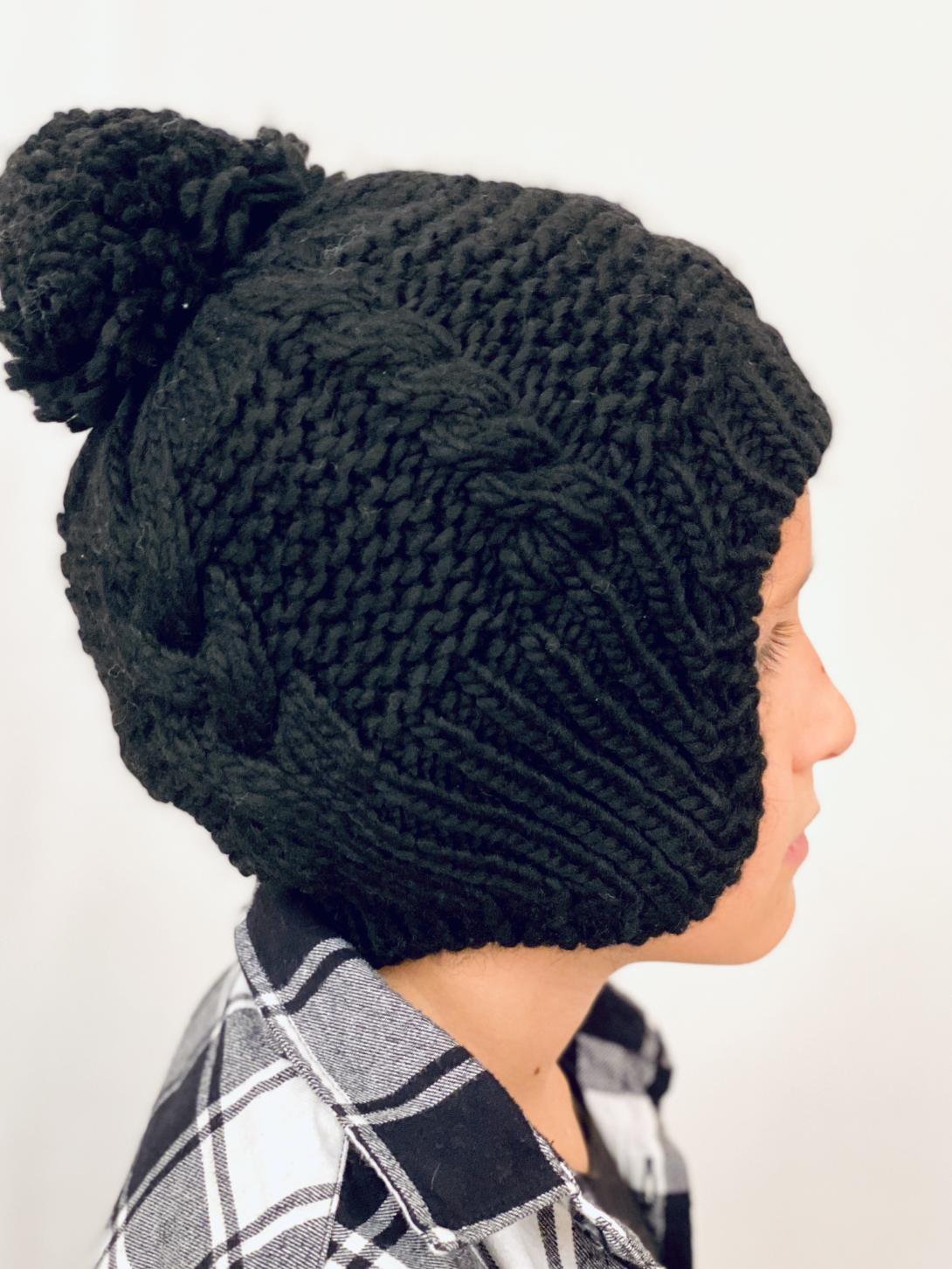 Шапка с пумпоном объемной вязки"косами". Шапка в стиле Ретро с ушками.Шапка: стильный и теплый аксессуар для зимнего сезона