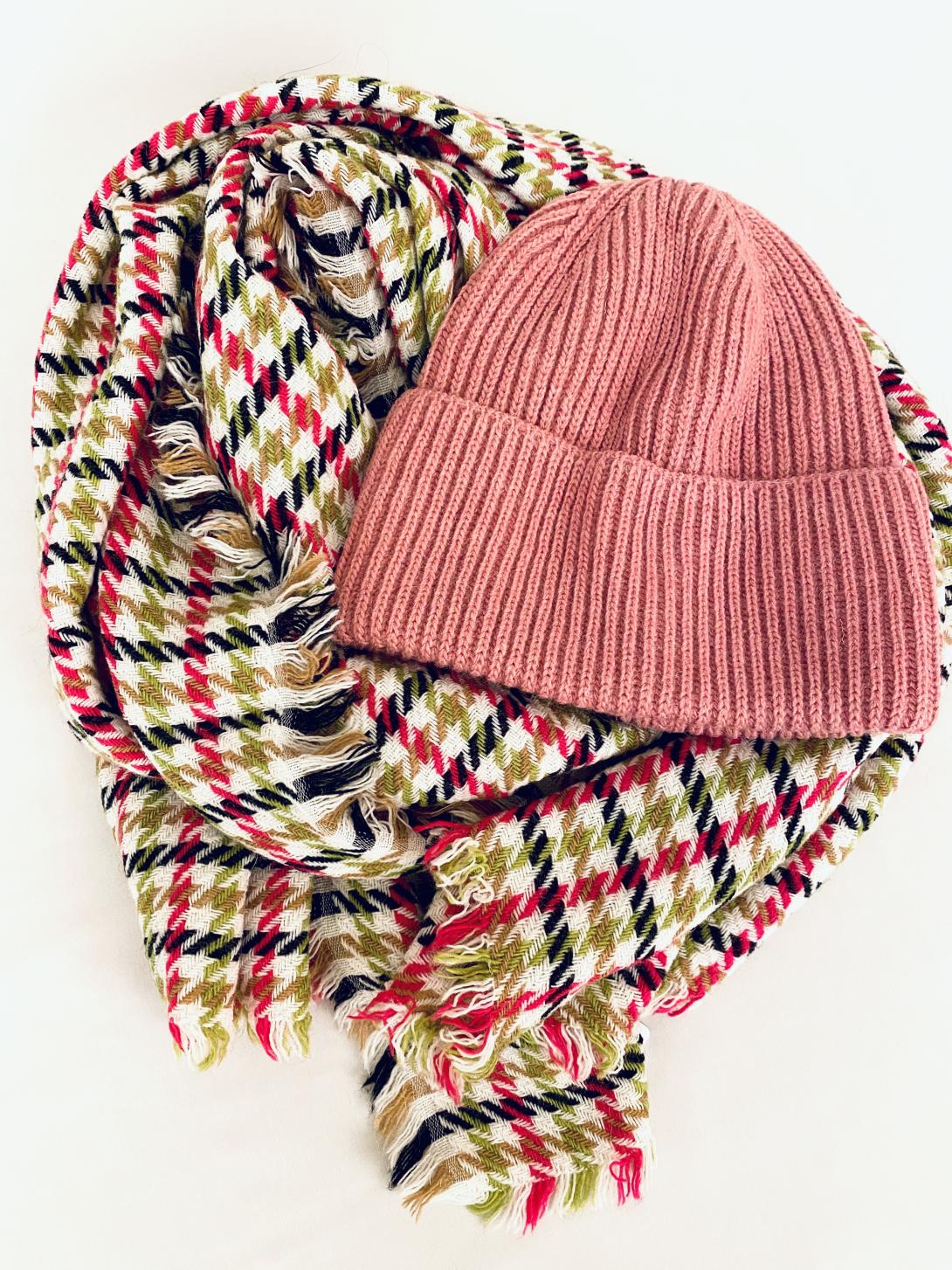 Шапка зимняя вязаная розовая подходит для зимнего сезона, обеспечивая надежную защиту от холода и ветра.