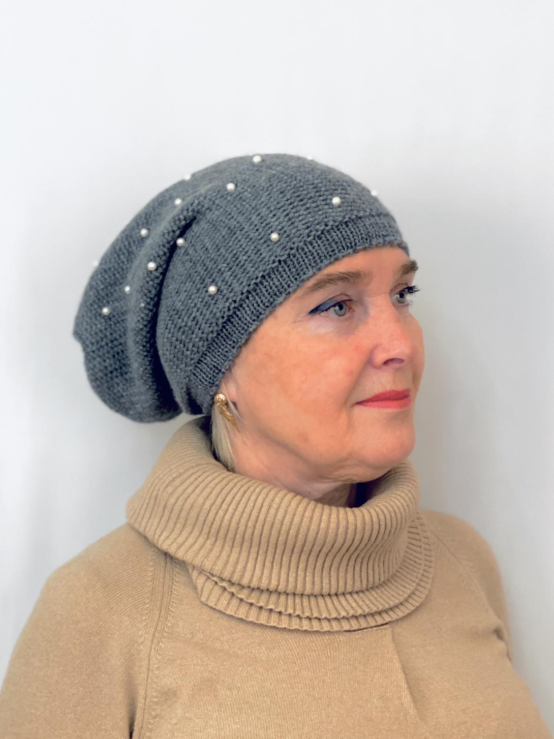 Декор бусинами придает шапке стильный и оригинальный вид, делая ее ярким акцентом вашего зимнего образа.