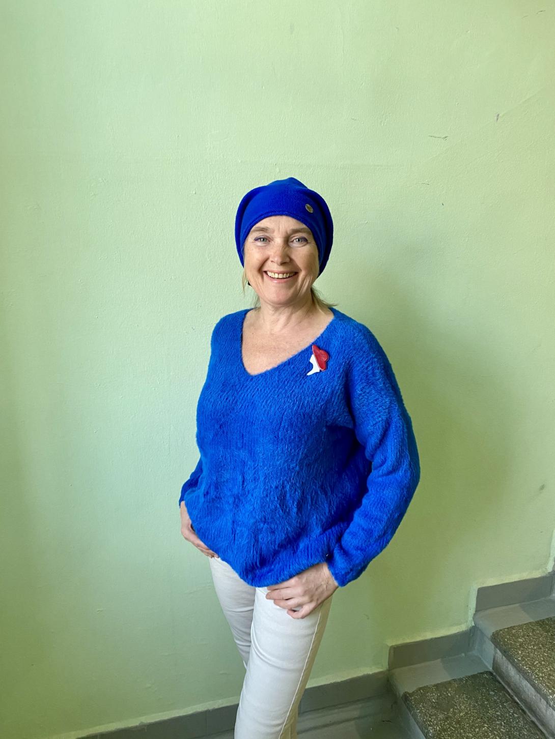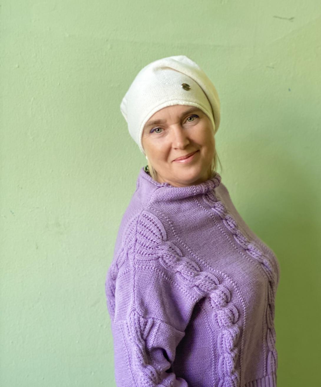 Оригинальная форма берета. Изумительное качество от Manila Grace.Мягкий и комфортный. Драпируется прекрасно по голове.Цвета- ярко-синий, белый.