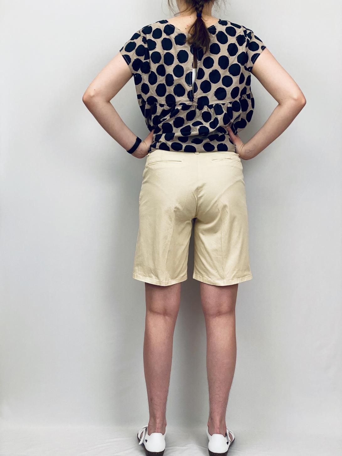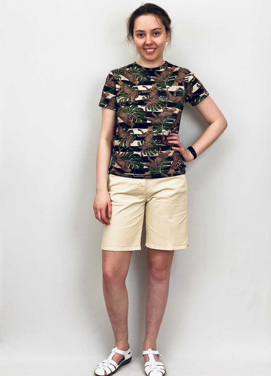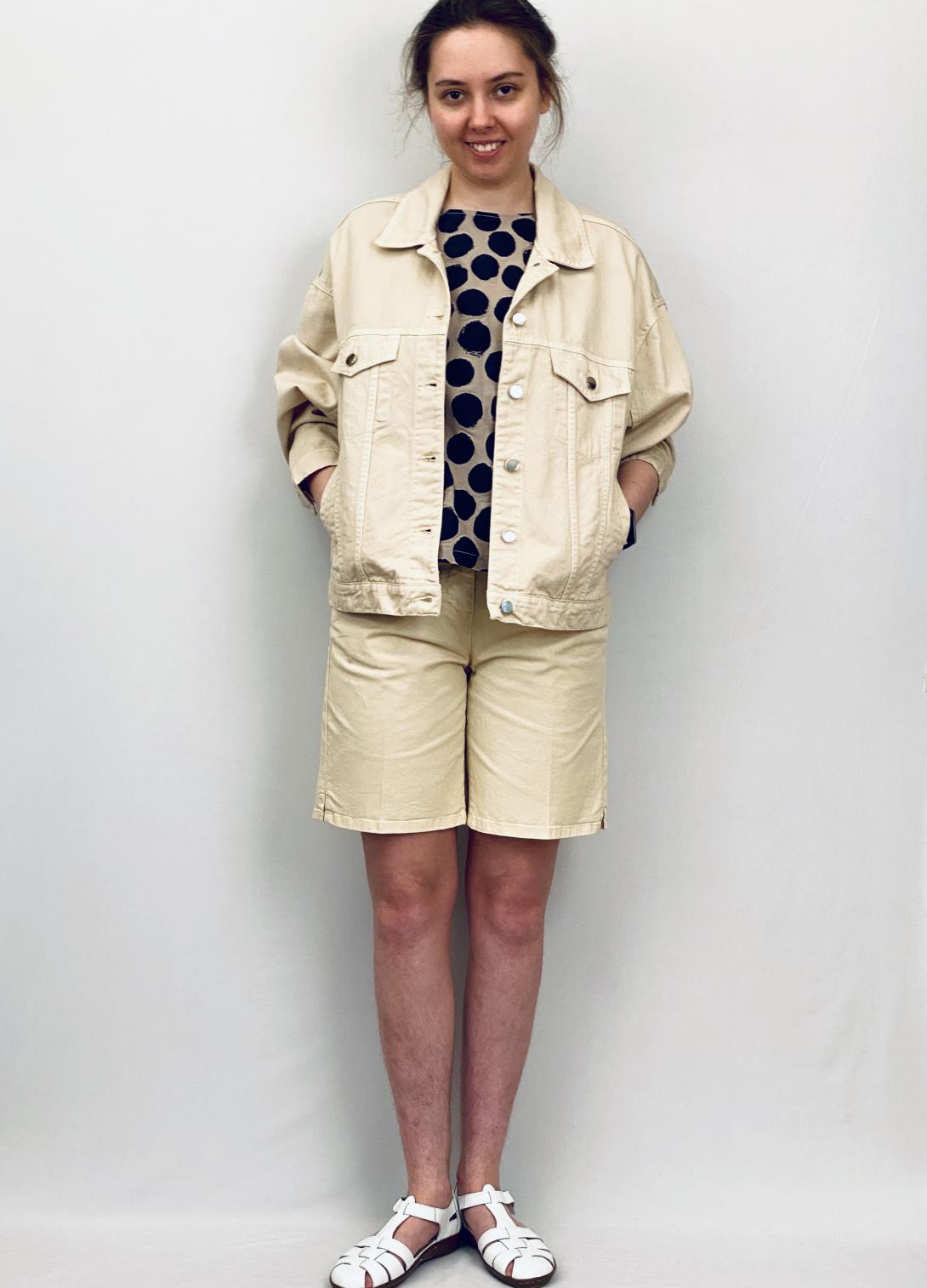 Прямые шорты напоминающие по стилю слаксы. Шорты приятного приятного разбелёного желтого цвета