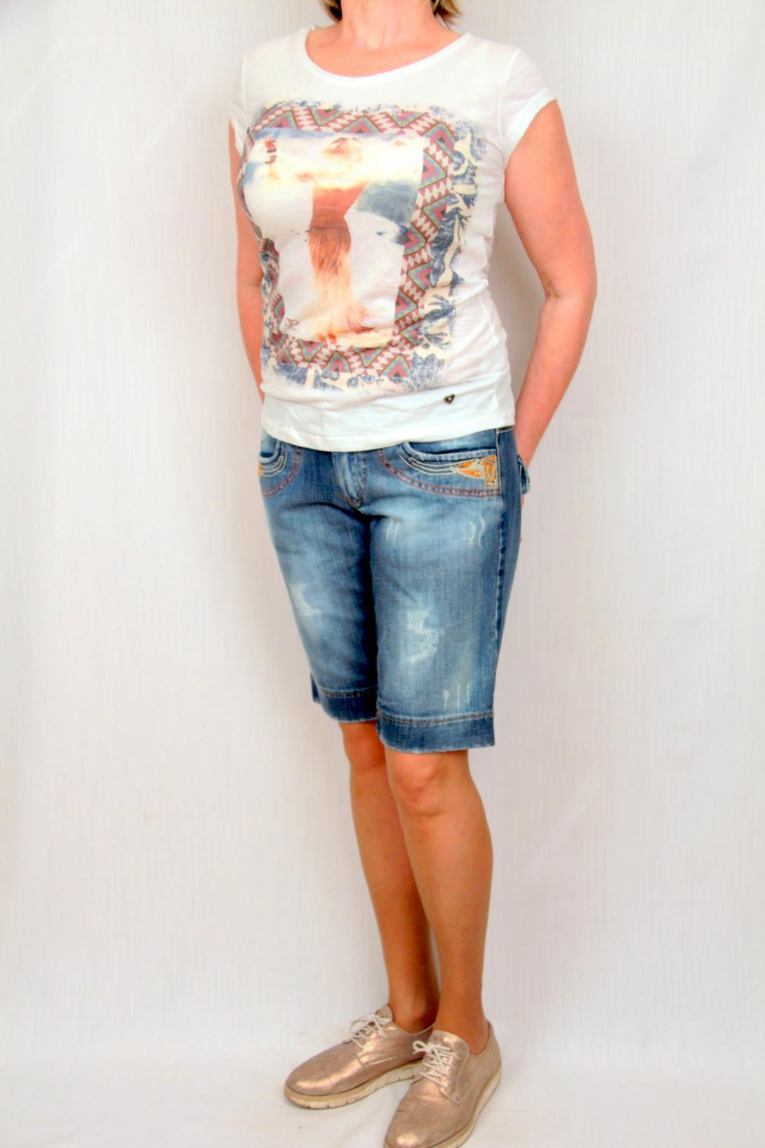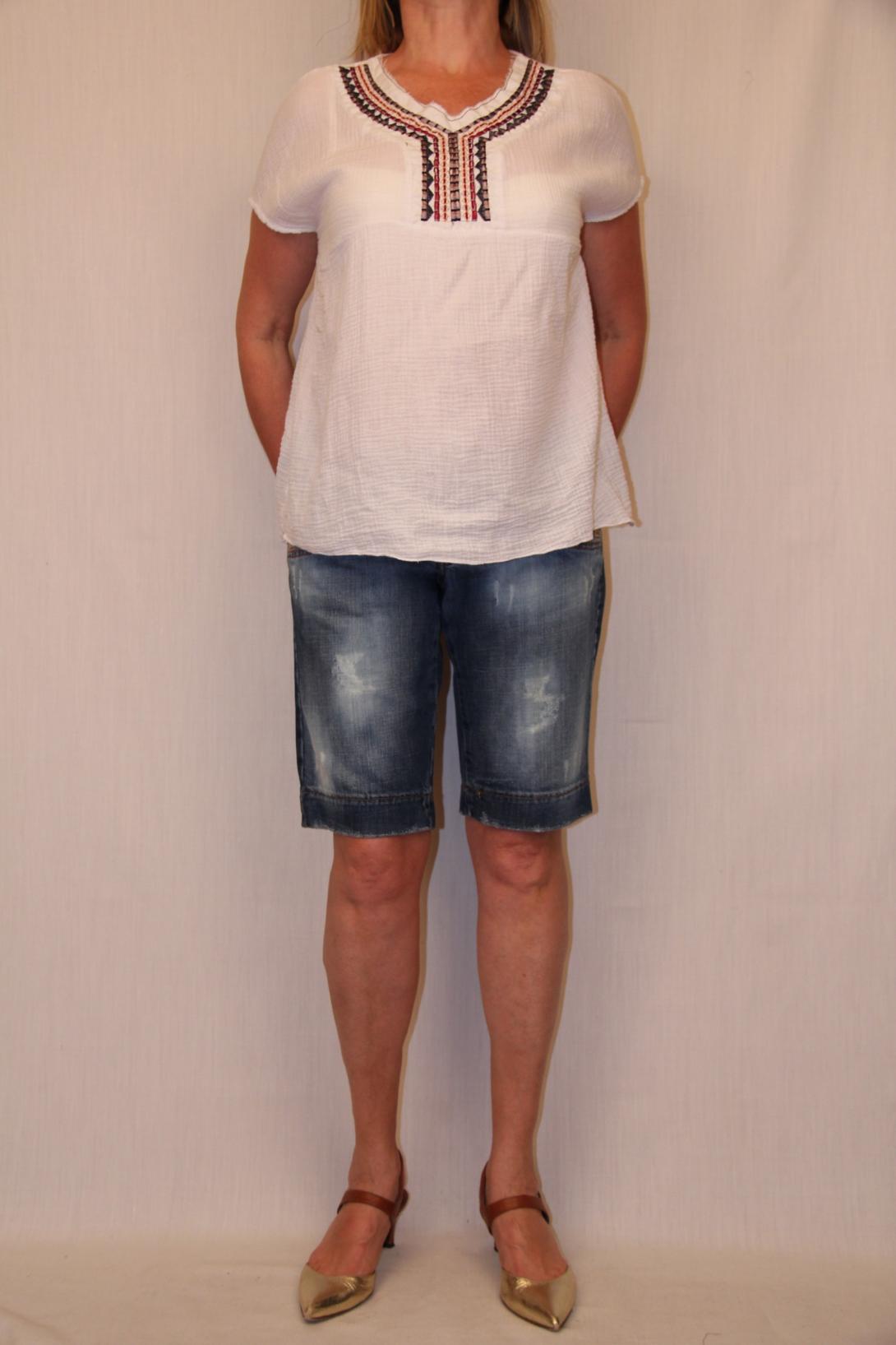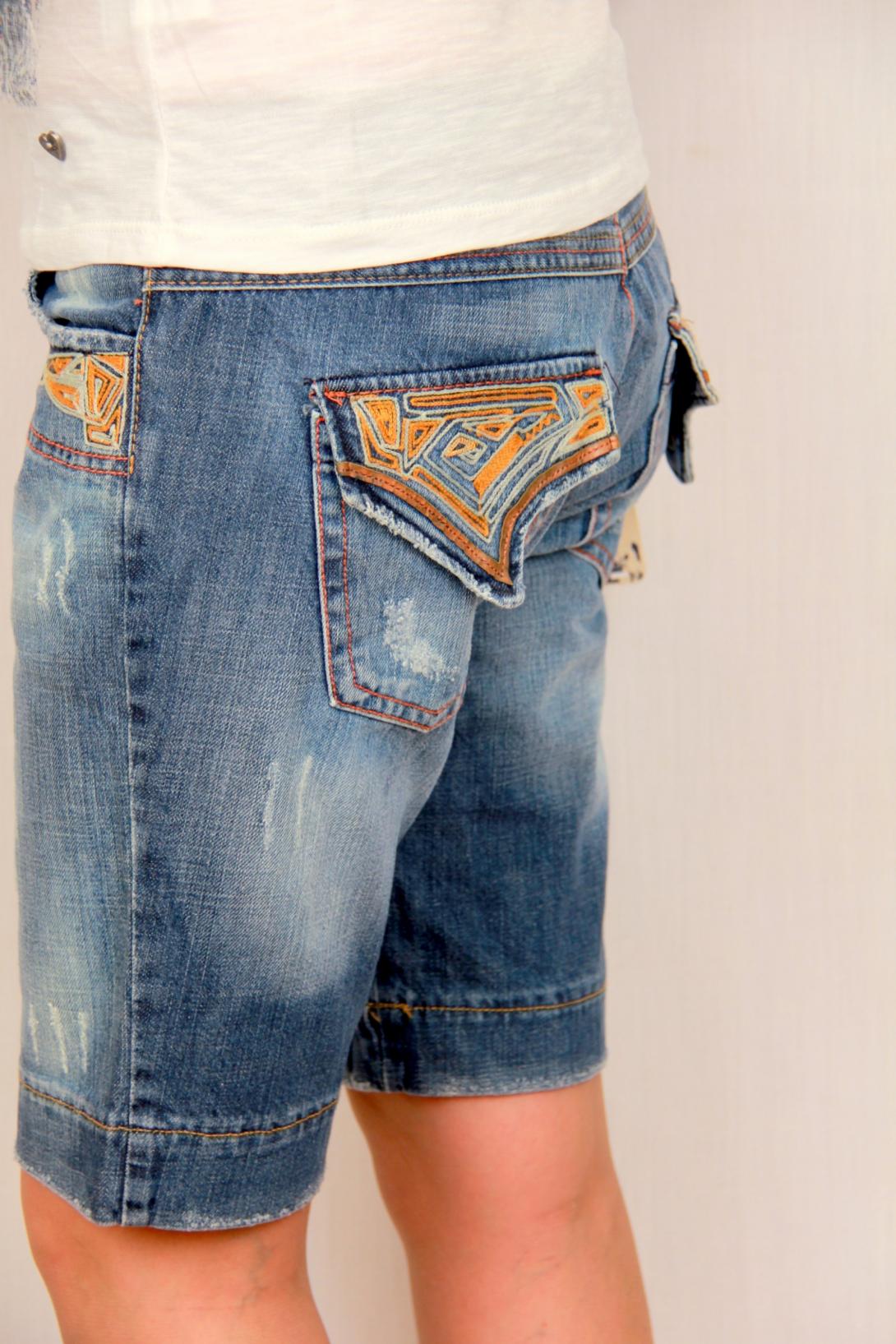 Классические джинсовые шорты зауженные по ноге. Шорты смотрятся нарядными благодаря этнической вышивке на карманах. Итальянский бренд Anna Biagini.