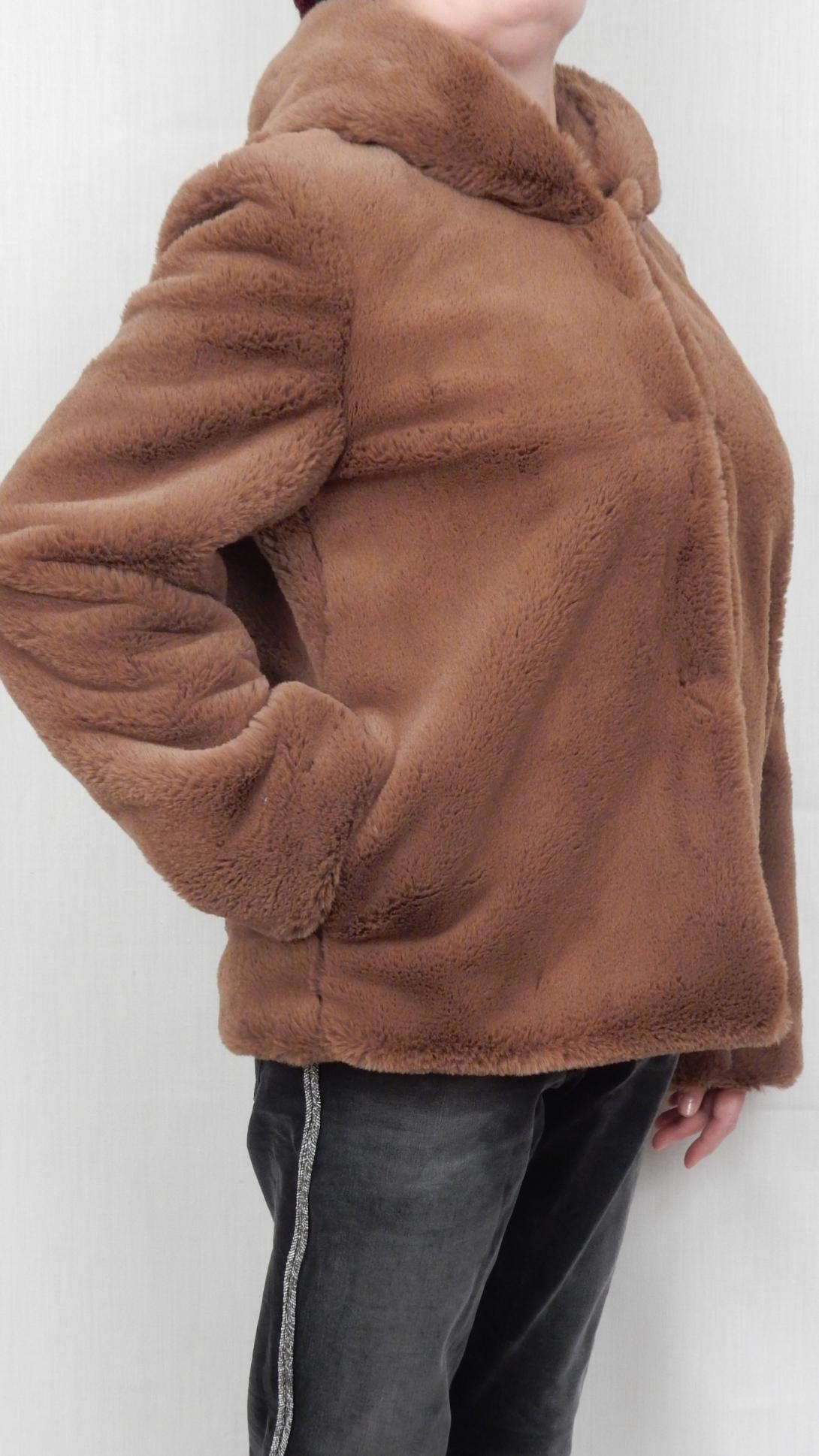 Короткая шубка из искусственного меха с капюшоном визуально мало чем отличается от натуральных меховых изделий, зато имеет прекрасный модный силуэт и демократичную цену! Модный полушубок с капюшоном светло-коричневого цвета, мягкий как домашняя киска :-) Застёжка-шубные крючки.