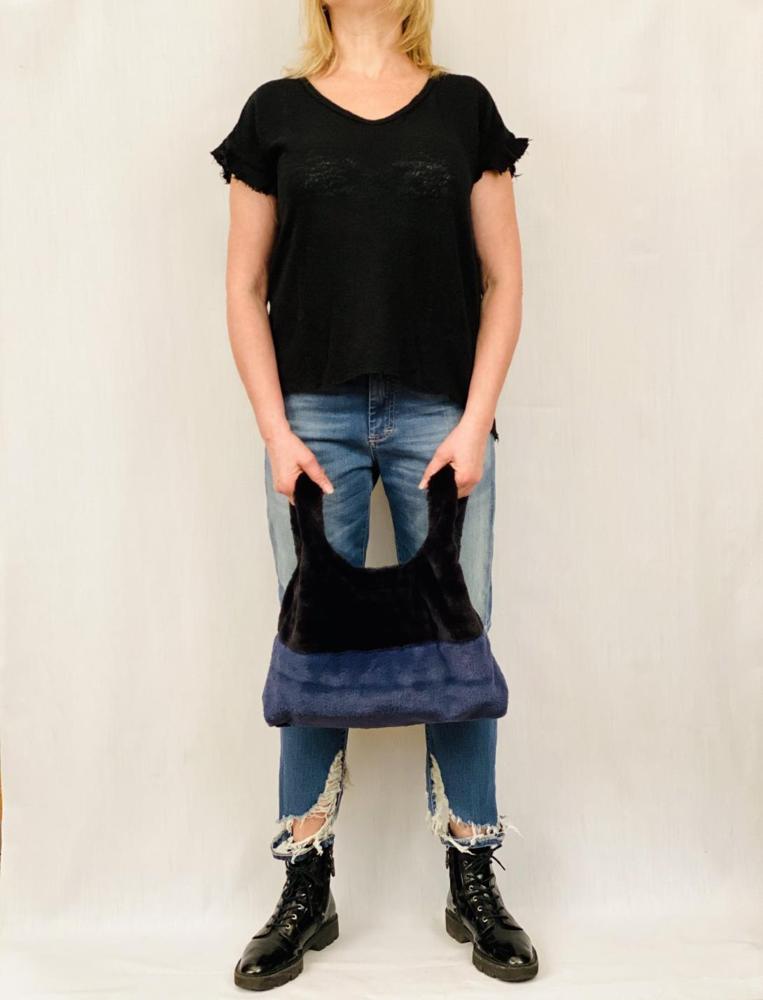 Меховая сумка чёрно/бордового цвета. Оригинальная и очень приятная по ощущениям. Сумка имеет застёжку - кнопку.