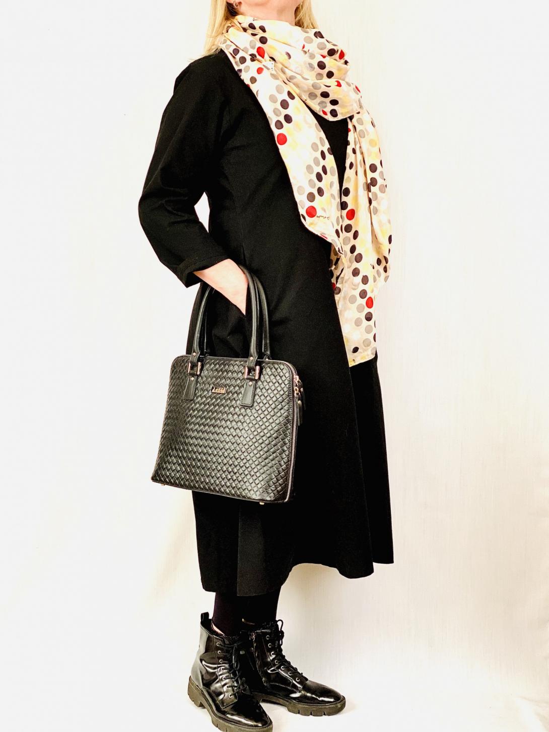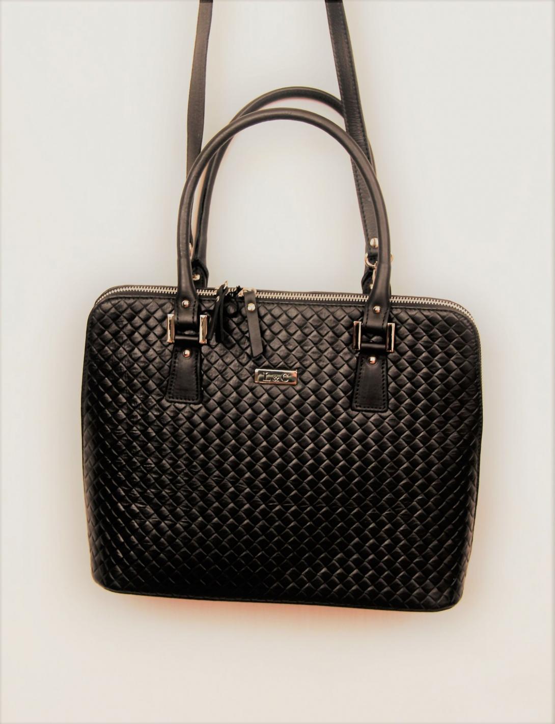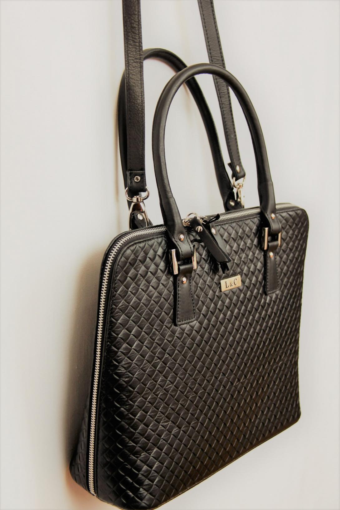 Стильная чёрная кожаная сумка от итальянского бренда.Внутри карман на молнии,который делит сумку на два отделения.По бокам два кармашка на замке "молния".Сумку можно носить на плече,имеется плечевой ремень.
