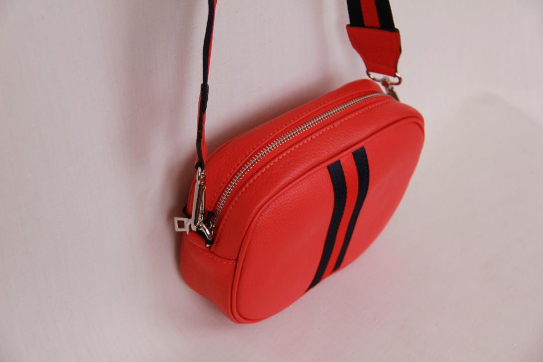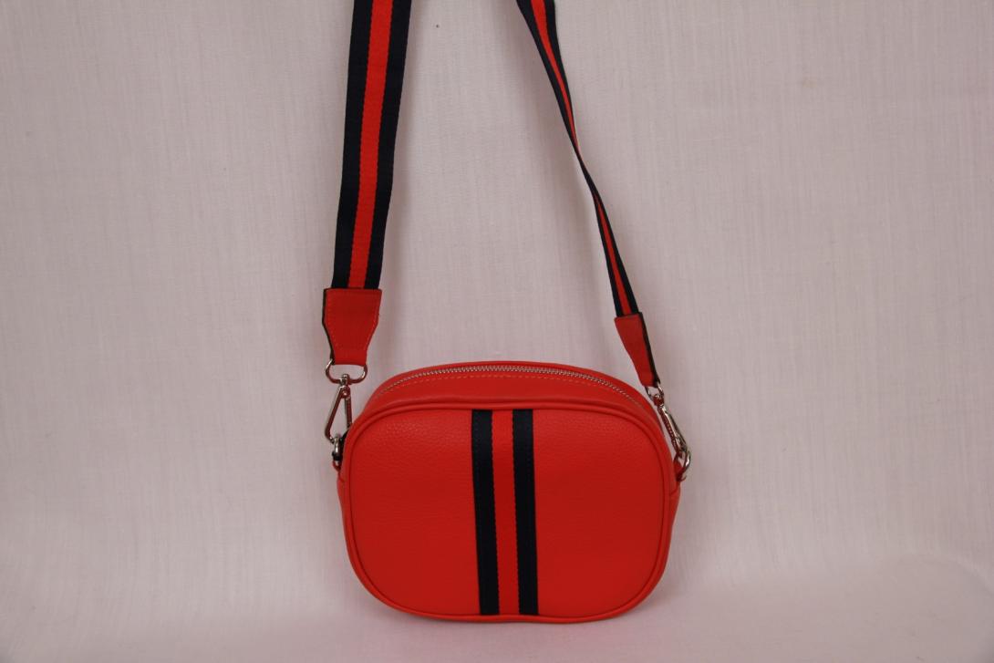Красивая сумка красного цвета на эффектном широком плечевом ремне. Сумка несмотря на свои небольшие размеры,достаточно вместительная.