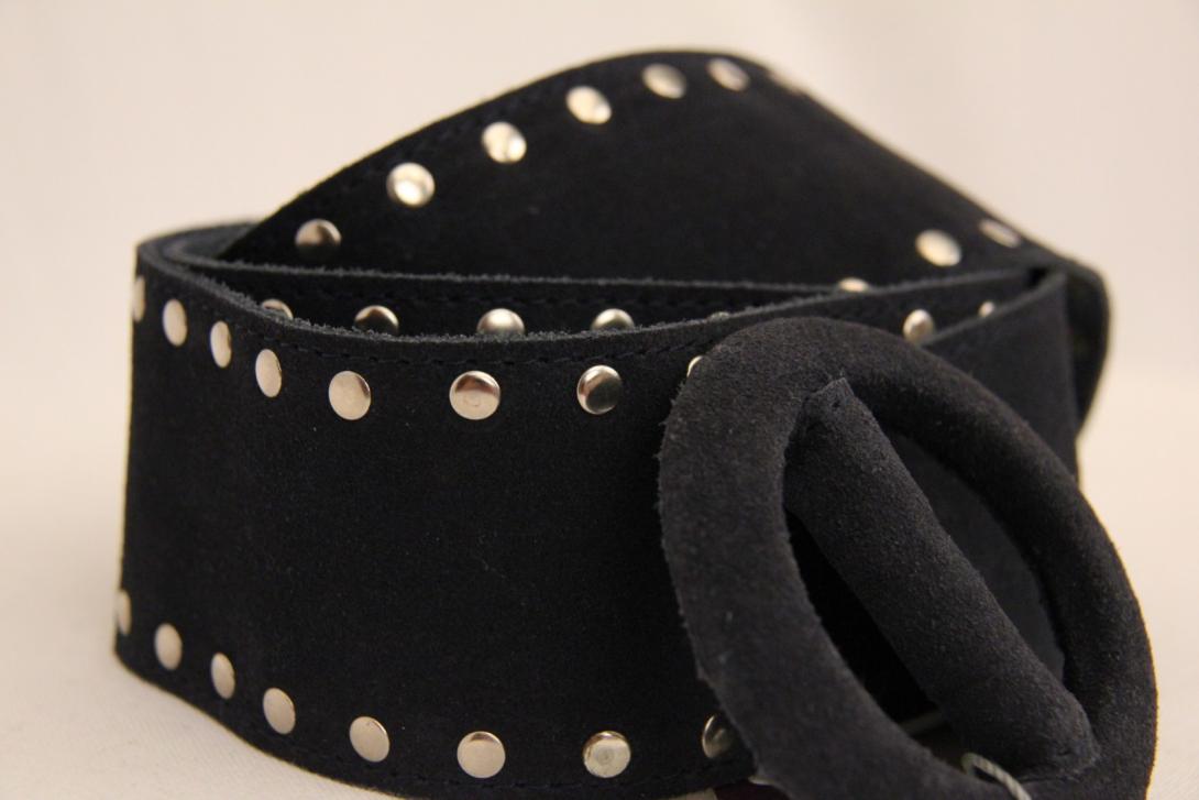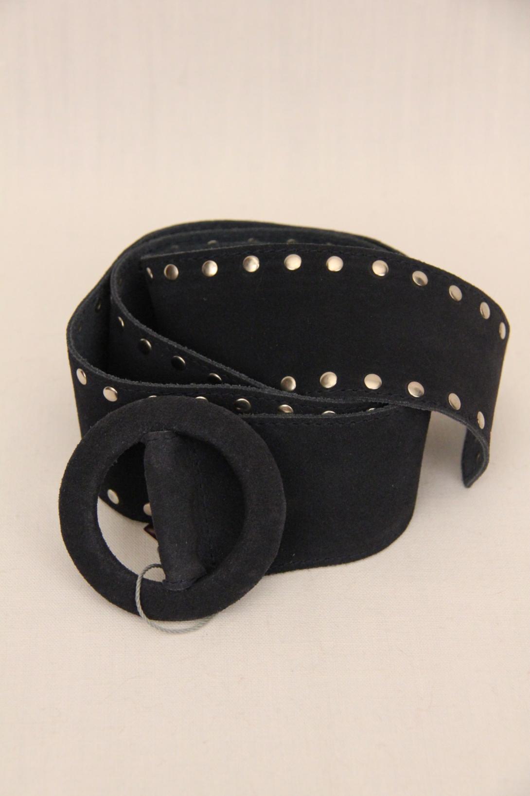 Стильный замшевый ремень т.синего (морской волны) цвета украшенный клёпками.Последние тенденции моды рекомендуют носить ремень поверх жакета,свитера или плаща.