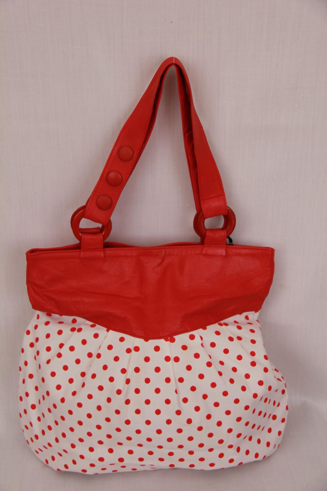 Элегантная легкая летняя сумка от итальянского бренда Please.Красный горох всегда в тренде.
