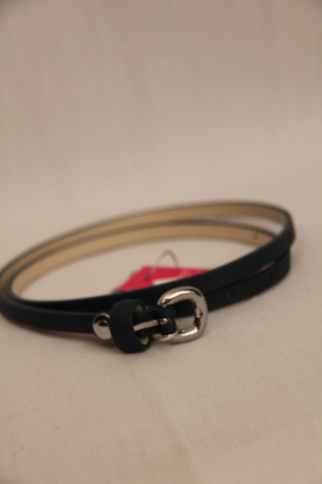 Тонкий ремешок синего цвета. Узким ремнём хорошо обозначить линию талии в свободных моделях одежды.