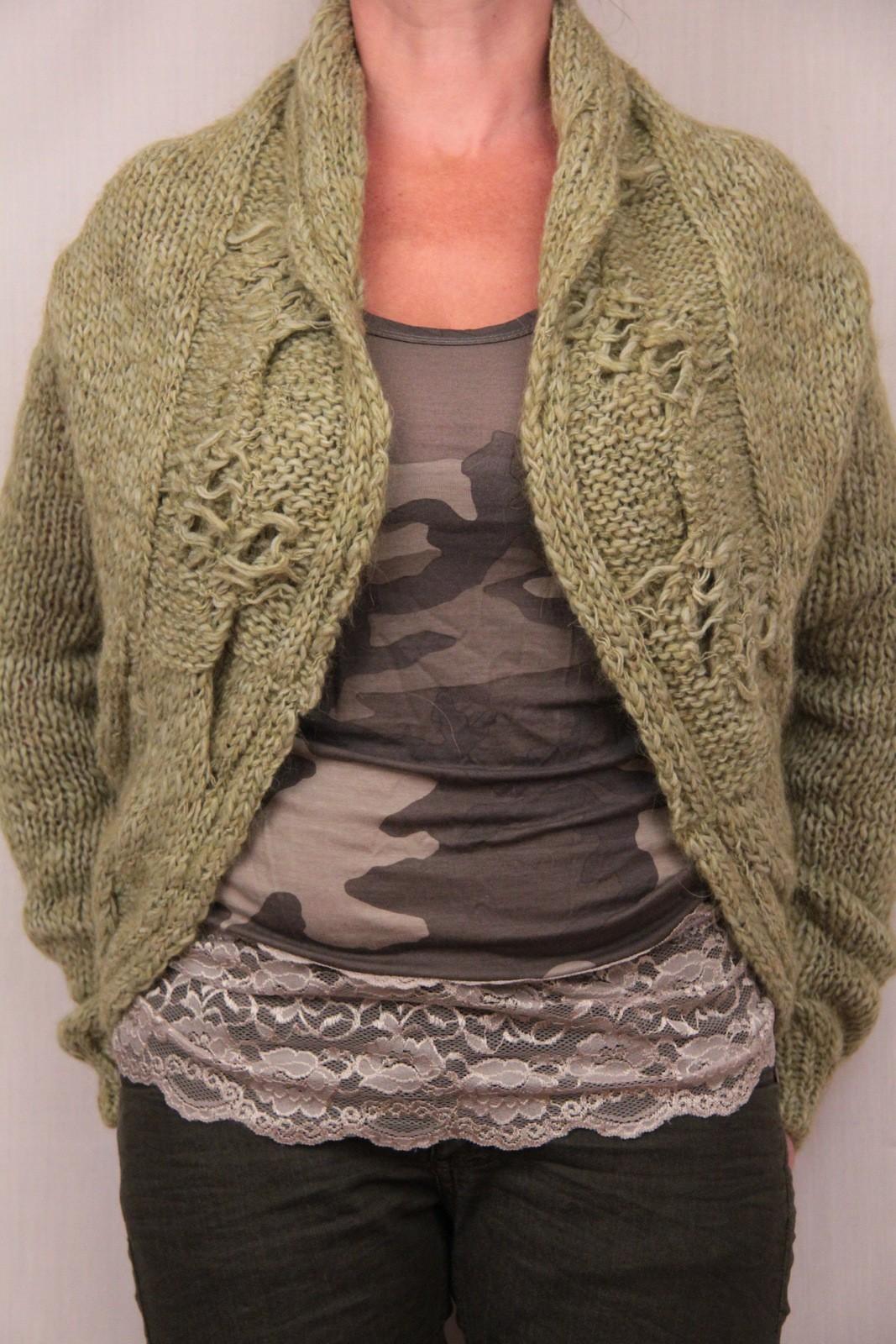 Вязаное болеро оливкового цвета с рукавами.Цвет-темно-красный.