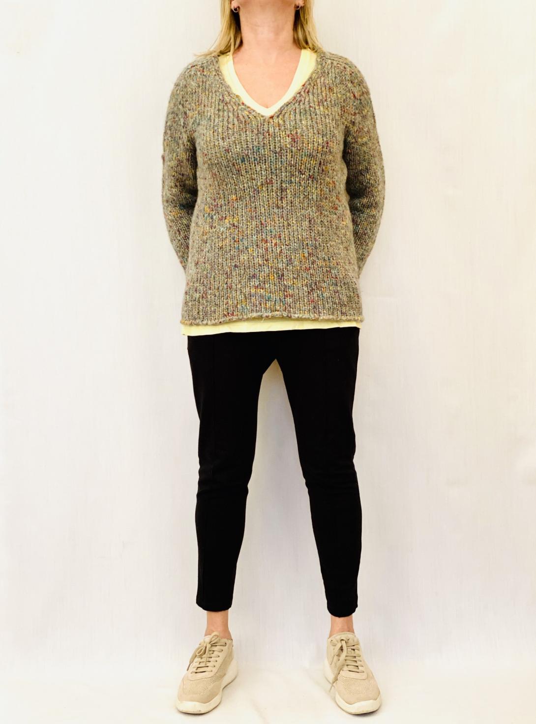 Джемпер объемной вязки, из цветных нитей - меланж с ниткой люрекса.