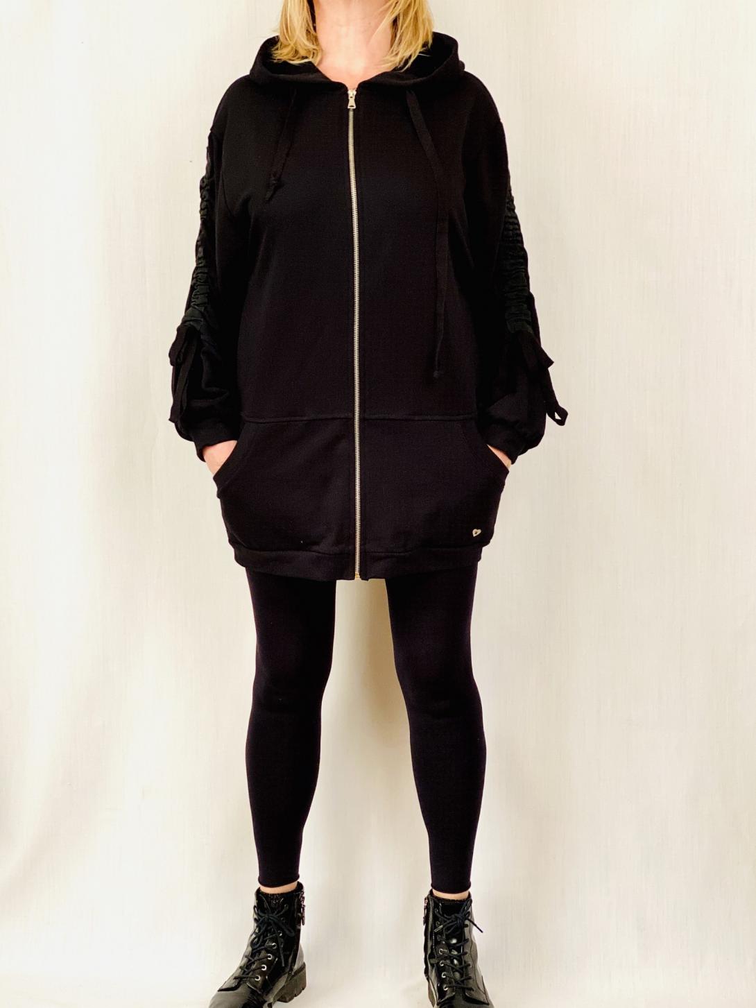 Классный чёрный свитшот на молнии от итальянского бренда Please. Рукав свободный, присборенный. Эта вещь для понимающих в моде.