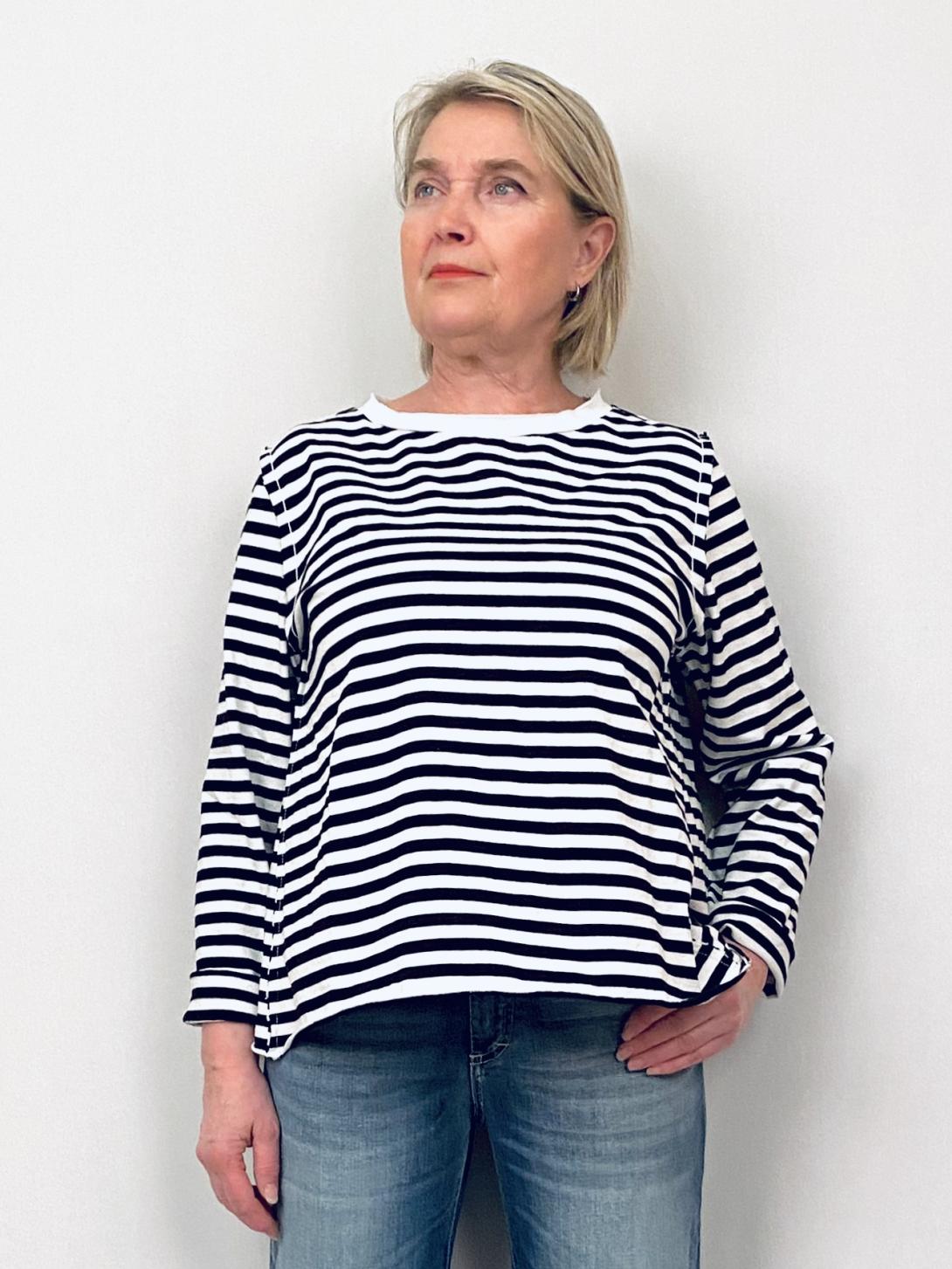 На модели на фото размер толстовки 46, рост 163 см.