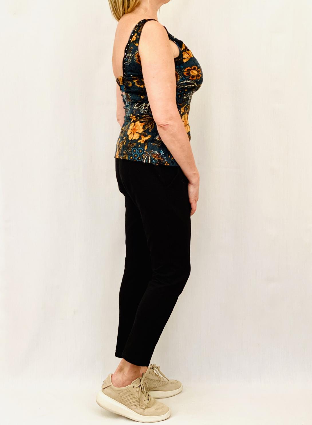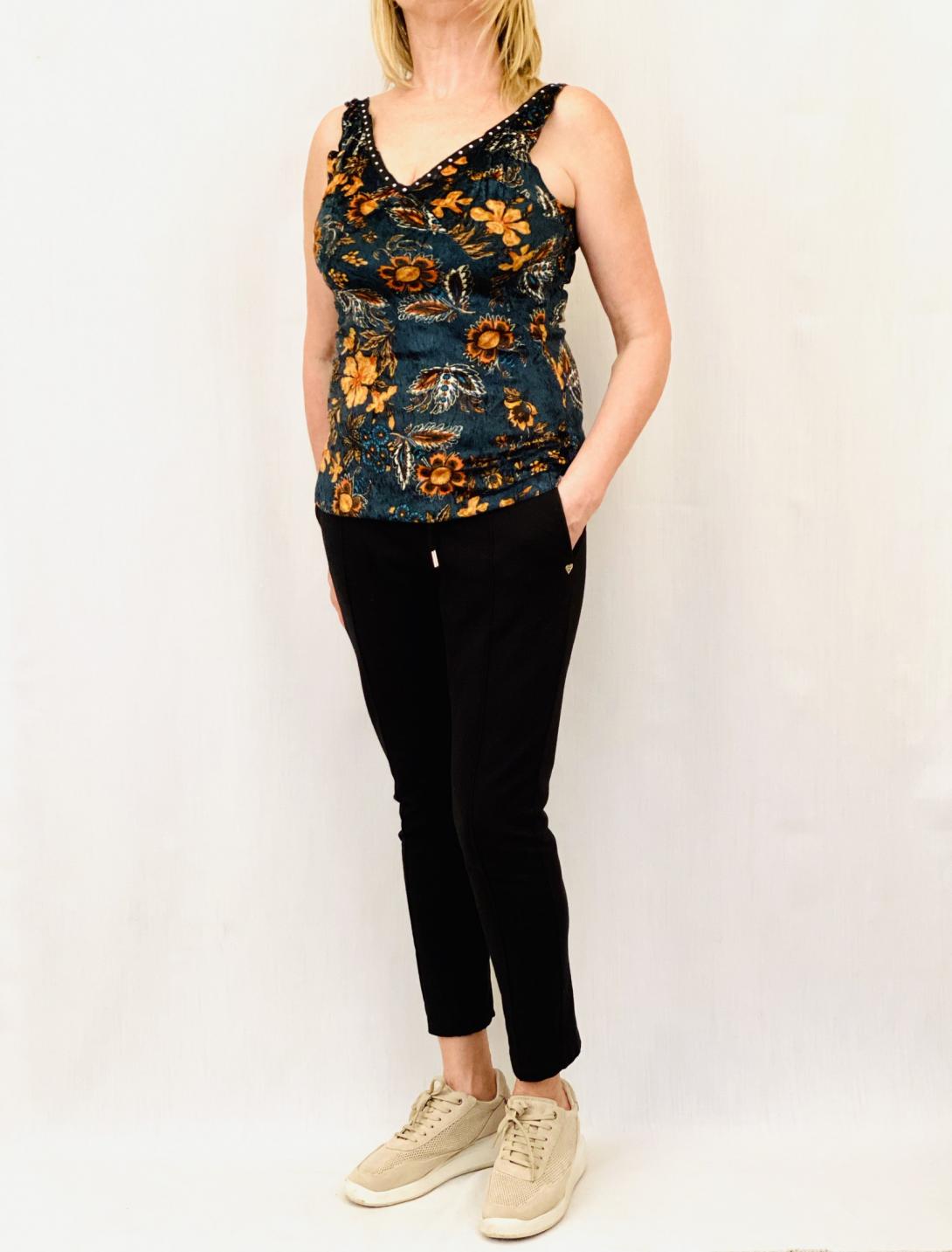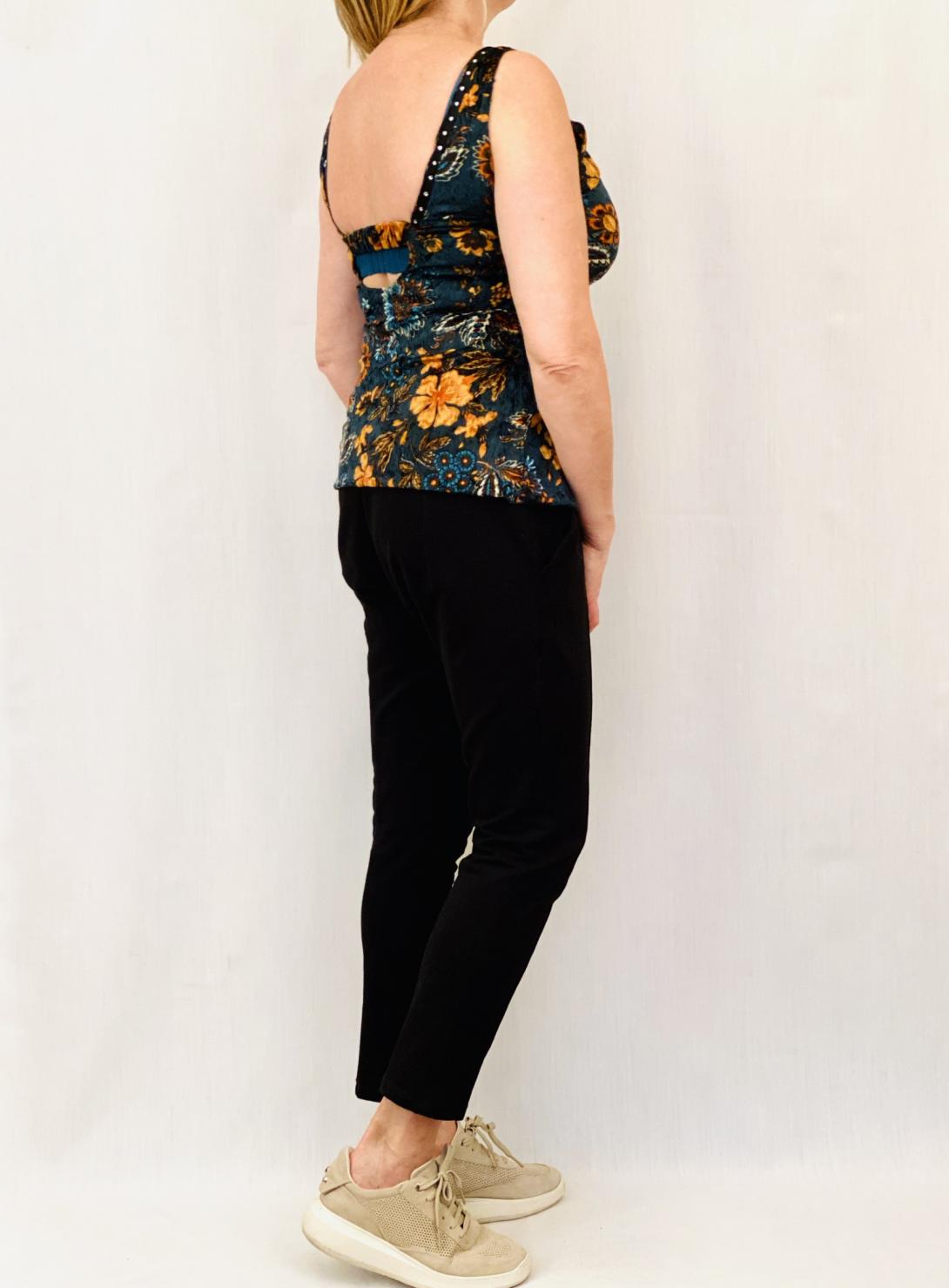 Нарядный топ из бархата с цветочным рисунком. Бархат остро моден в этом сезоне. Вещи из бархата можно комплектовать с вещами в стиле кэжуал.