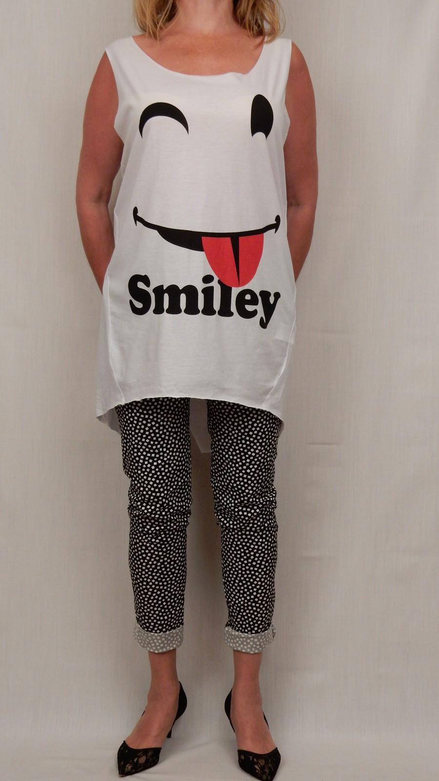 Длинная футболка без рукавов с ярким выразительным принтом.