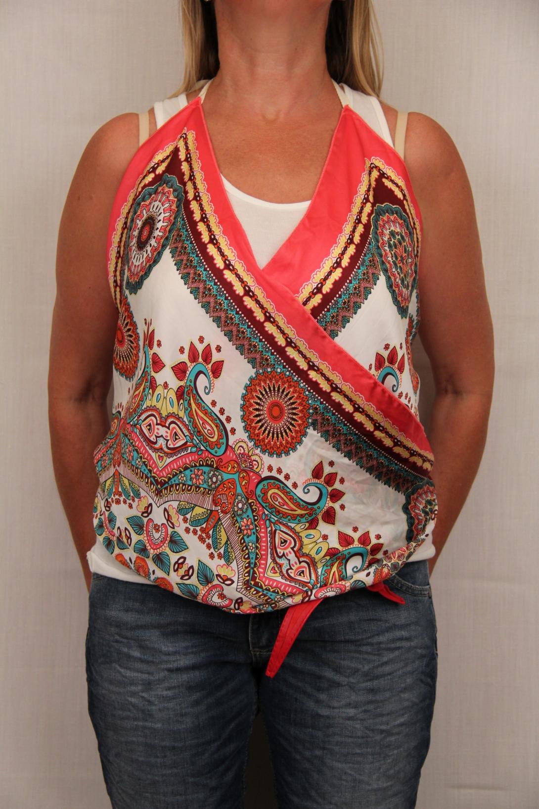 Нарядный топ с этническим рисунком состоит из двух элементов одежды: майки- борцовки из хлопка и нарядной верхней части..всё можно носить раздельно.