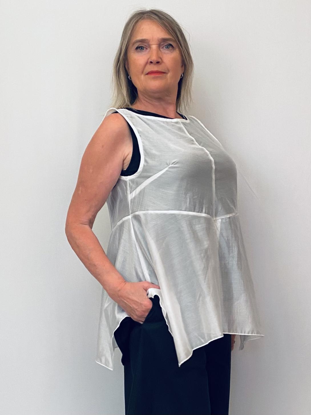 Топ из тонкой полупрозрачной ткани лиоцелл .Лиоцелл – это волокно нового поколения, которое по своим тактильным свойствам напоминает хлопок самого высокого качества.