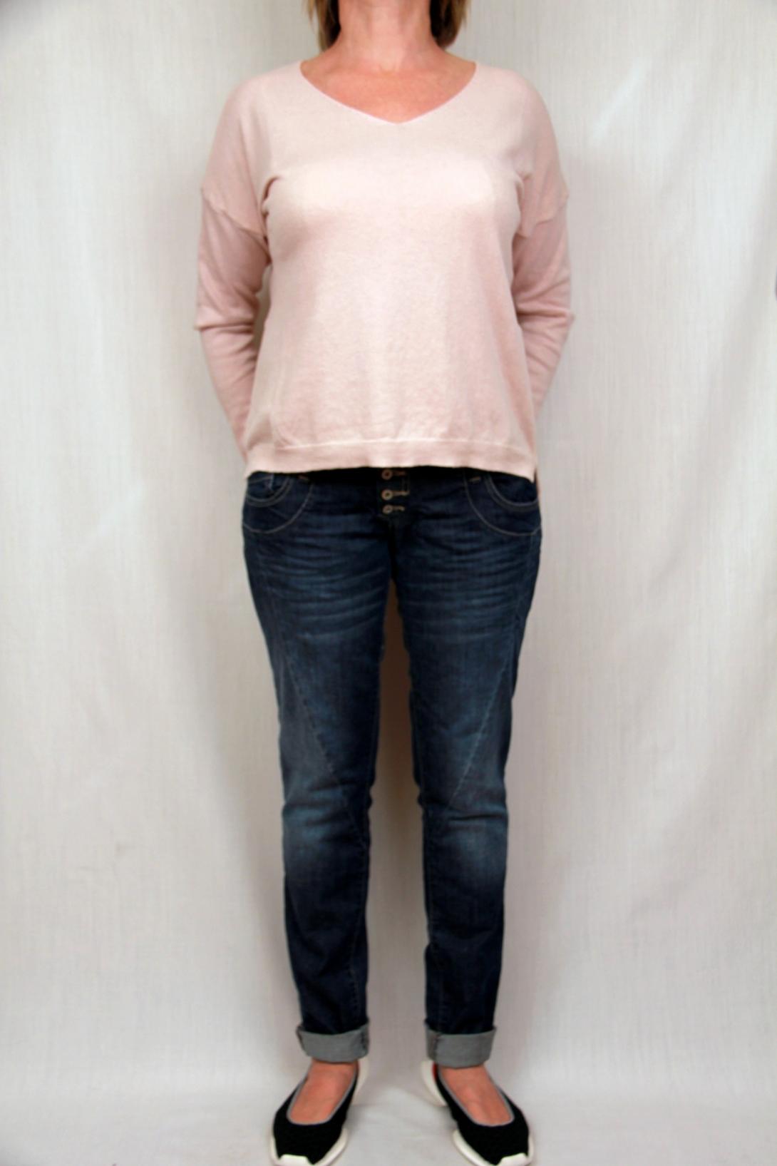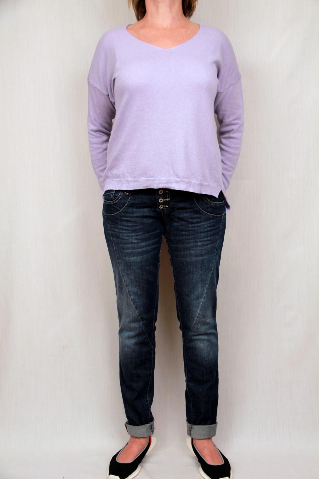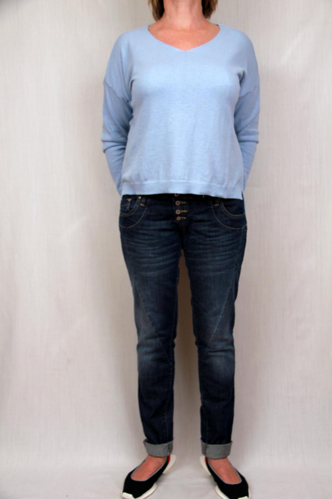 Классический трикотаж приятного голубого цвета. Вырез углом.