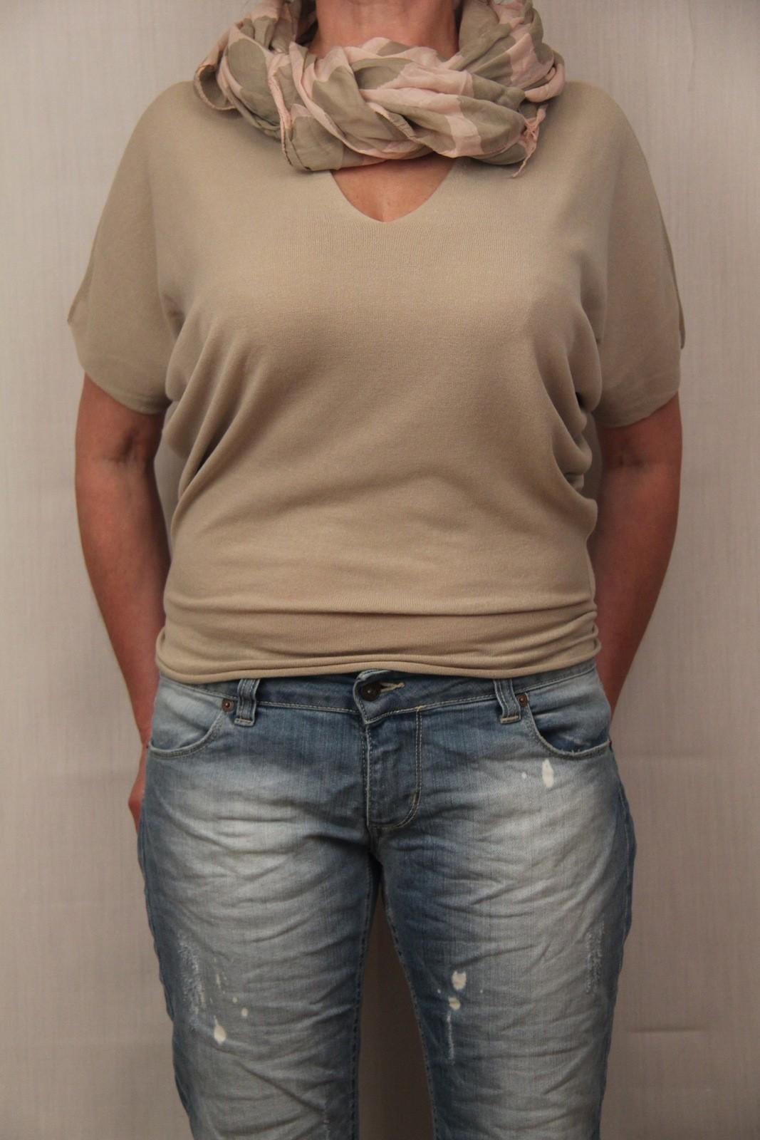 Тонкий бесшовный вискозный трикотаж с коротким рукавом.Цвет- бежевый,голубой,т.синий.