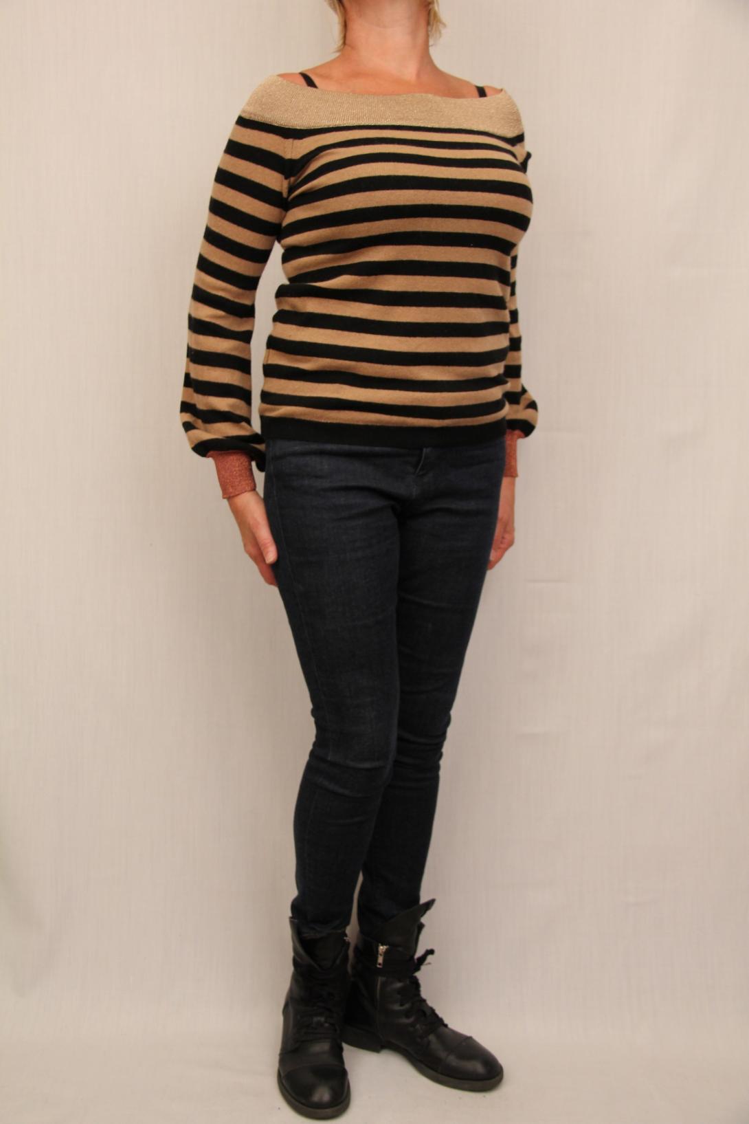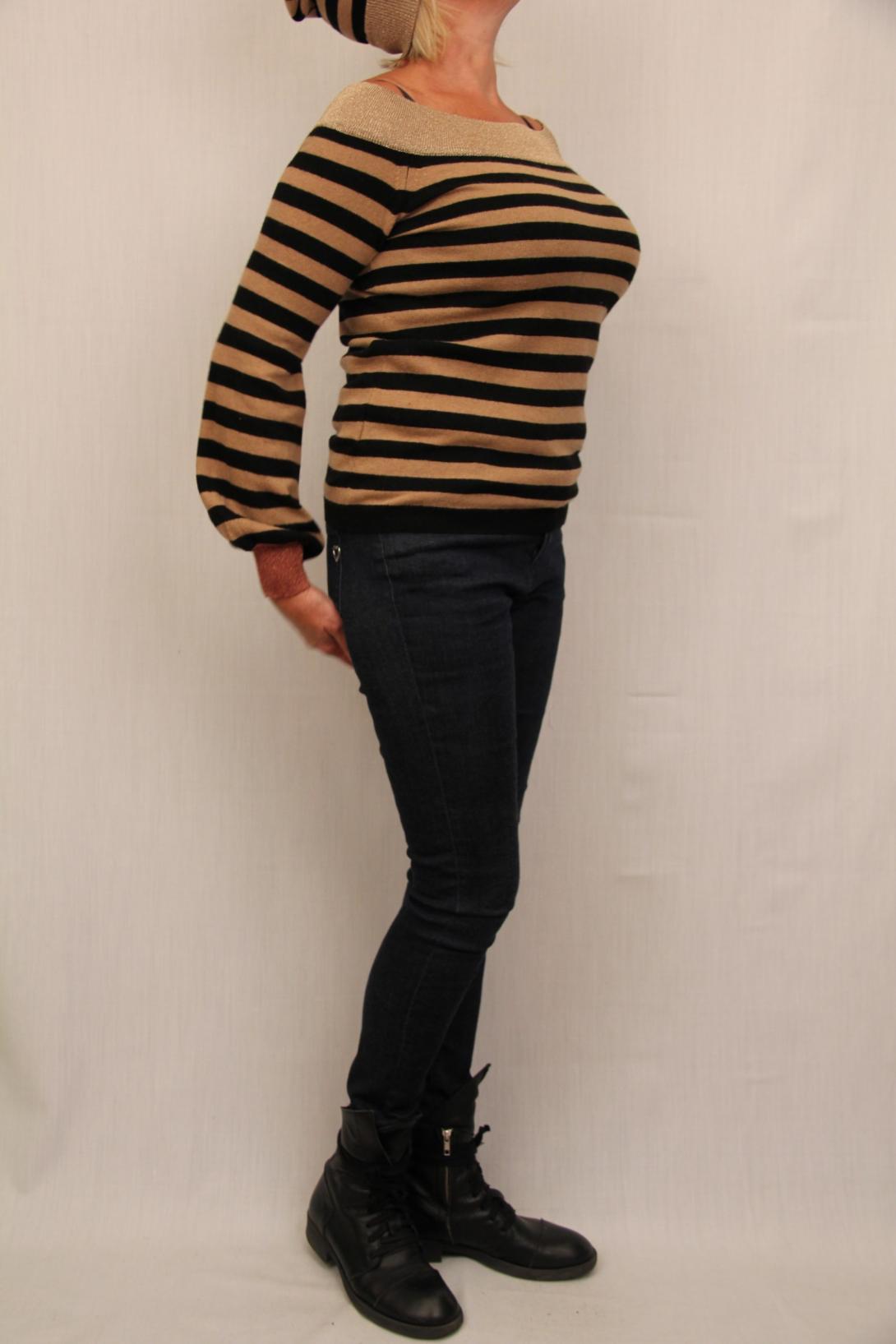 Красивый и модный трикотаж от Ит.бренда Kontatto. В комплект можно добавить шапку в полоску по голове с отделкой золотом.