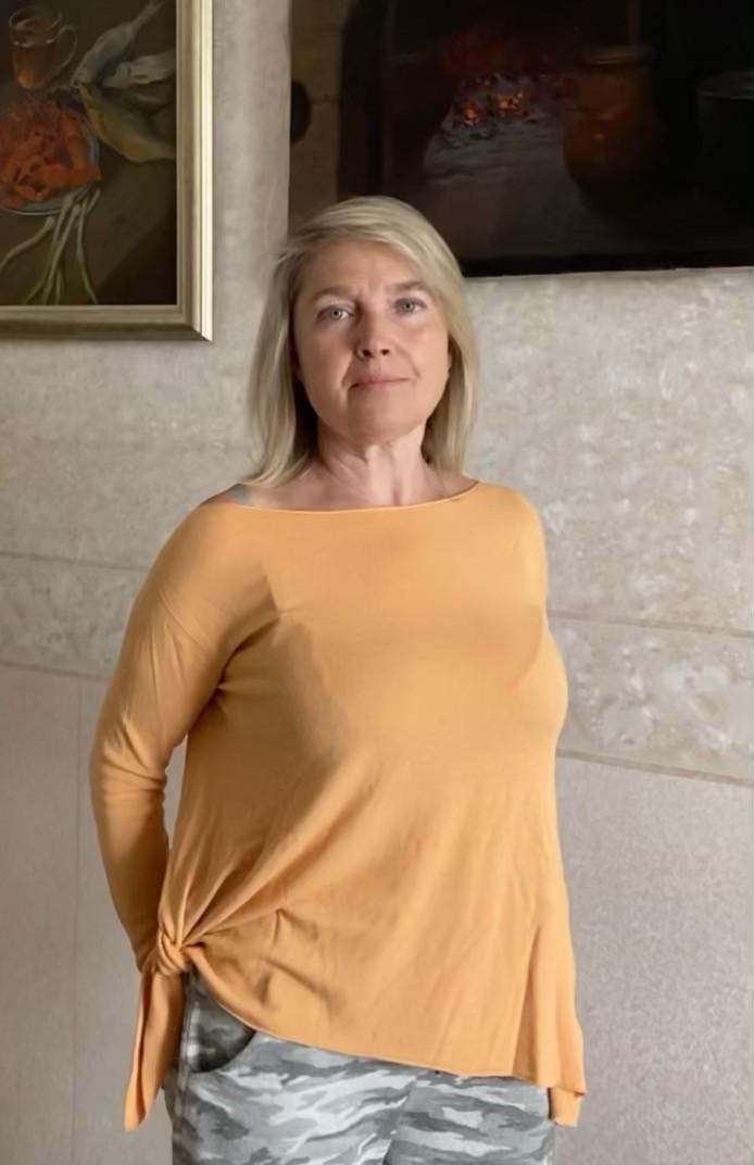 Трикотаж красивого персикового цвета, вырез лодочкой по бокам разрезы.