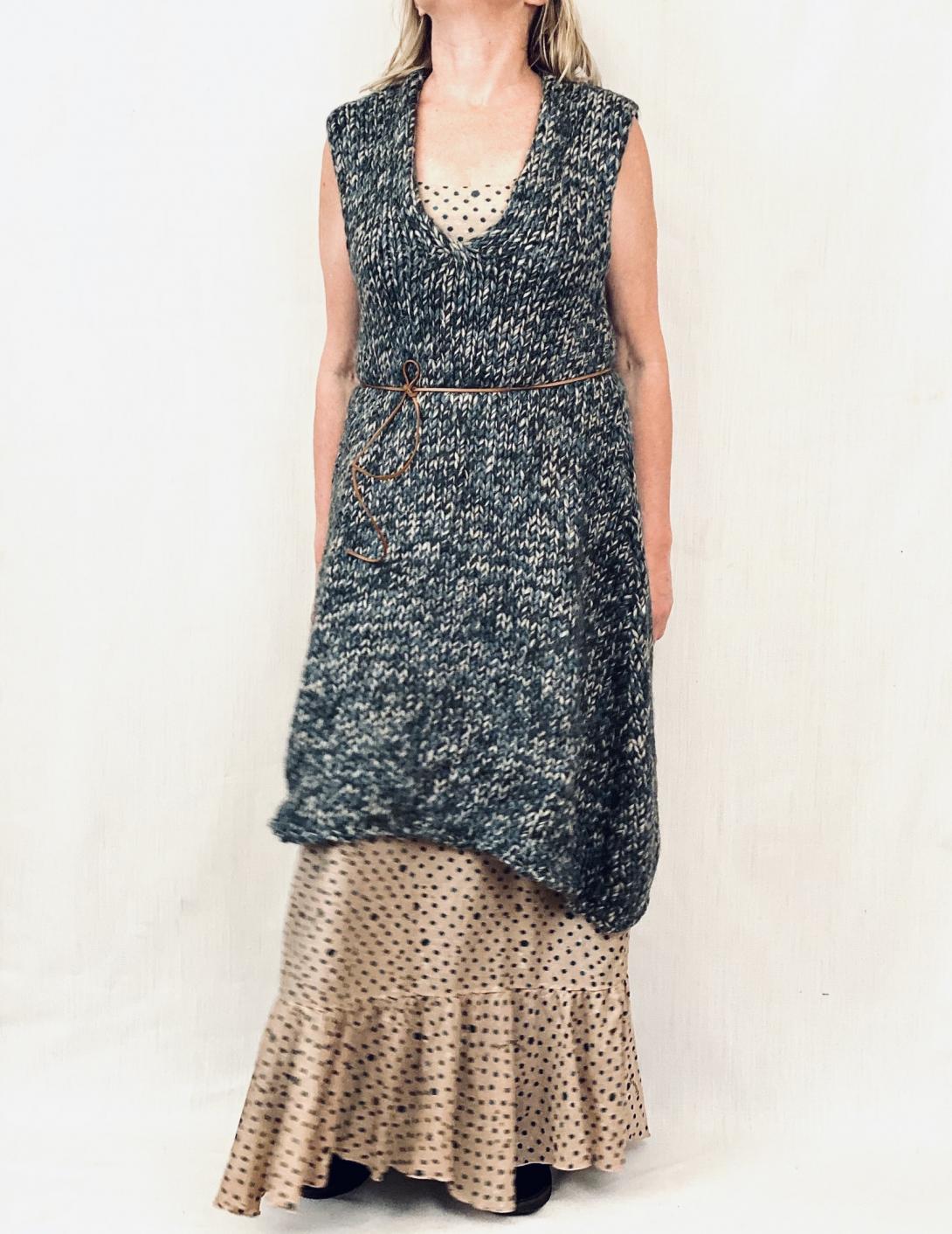 Manila Grace создаёт коллекции одежды, которые удивительным образом можно и нужно комплектовать, что позволяет делать гардероб разнообразным. Удлинённый жилет объёмной вязки безупречен в сочетании с платьем или длинной юбкой. В комплекте-тонкий кожаный поясок.