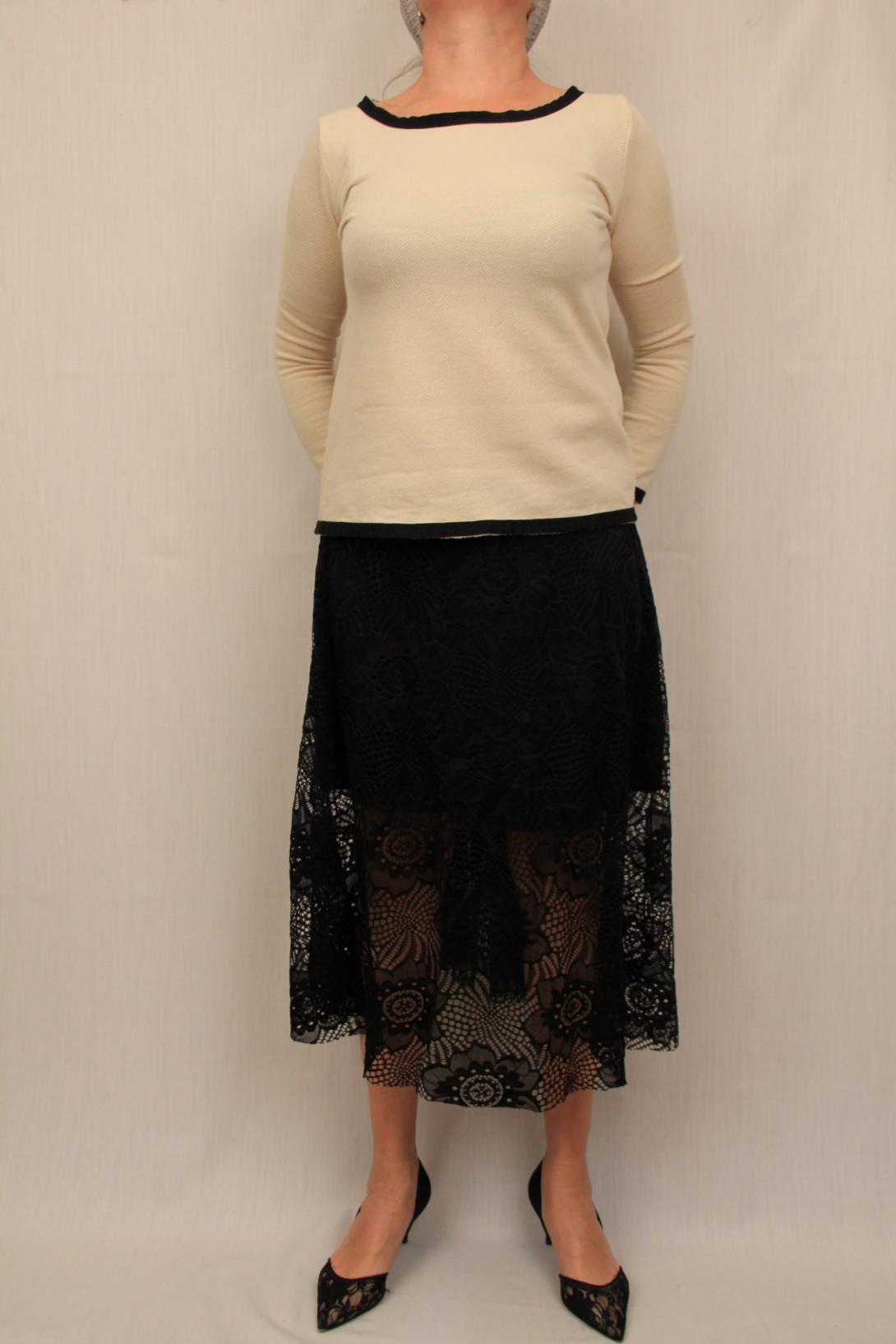 Это стильный х/б джемпер с чёрной отделкой на спине.Комплектуется как с модными джинсами ,так и с вельветовыми брюками.