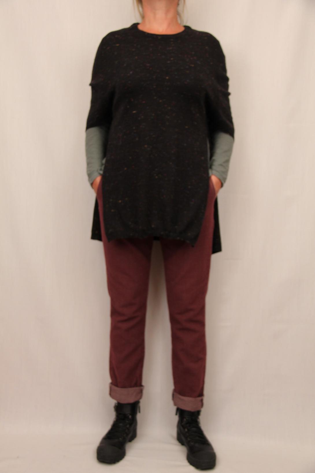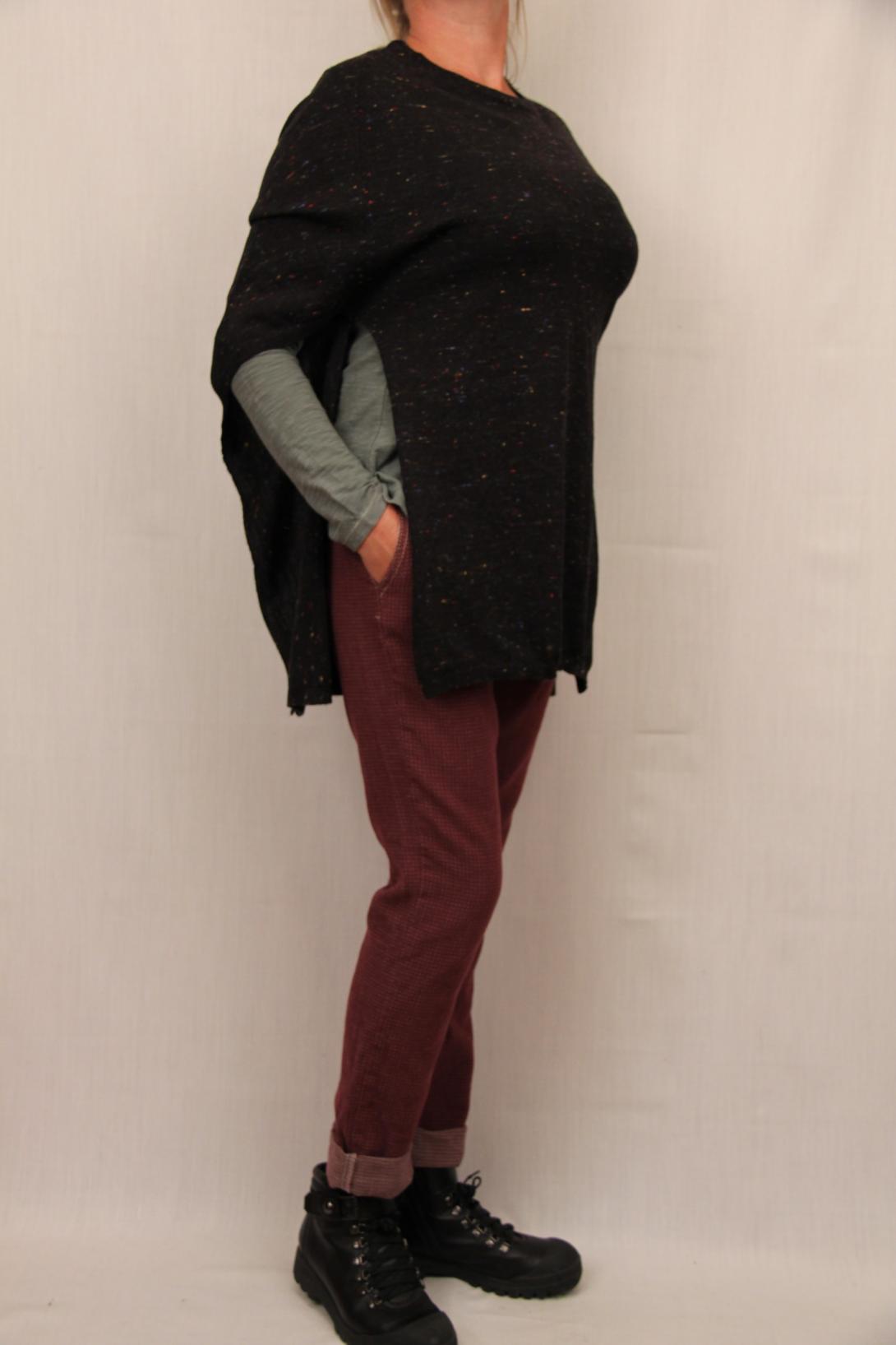 Элегантный трикотажный джемпер итальянского бренда, оригинального кроя . Джемпер чёрный с вкраплением жёлтых, красных, зелёных и бордовых цветов, т.е прекрасно подойдёт к одежде в любом цвете.