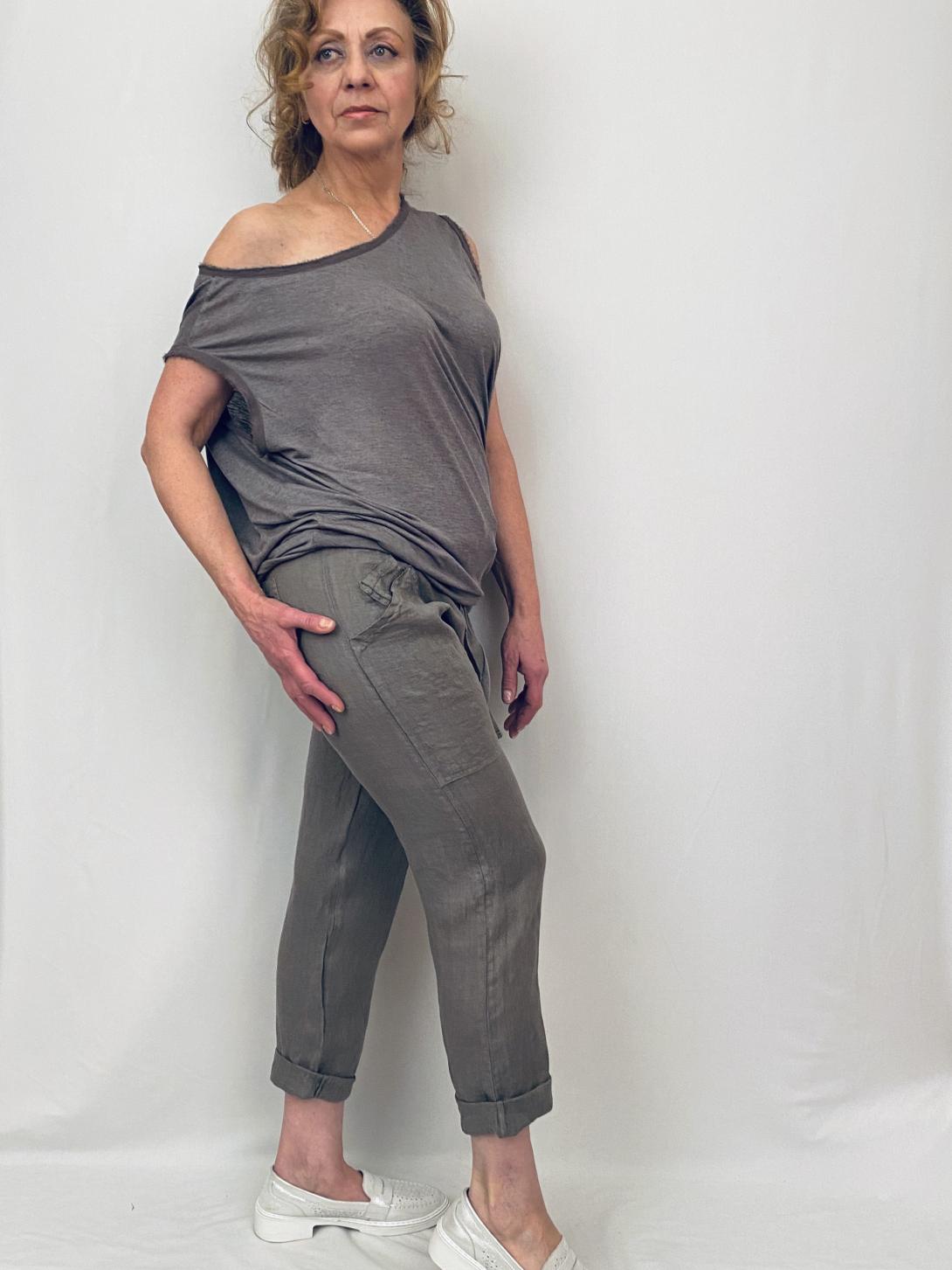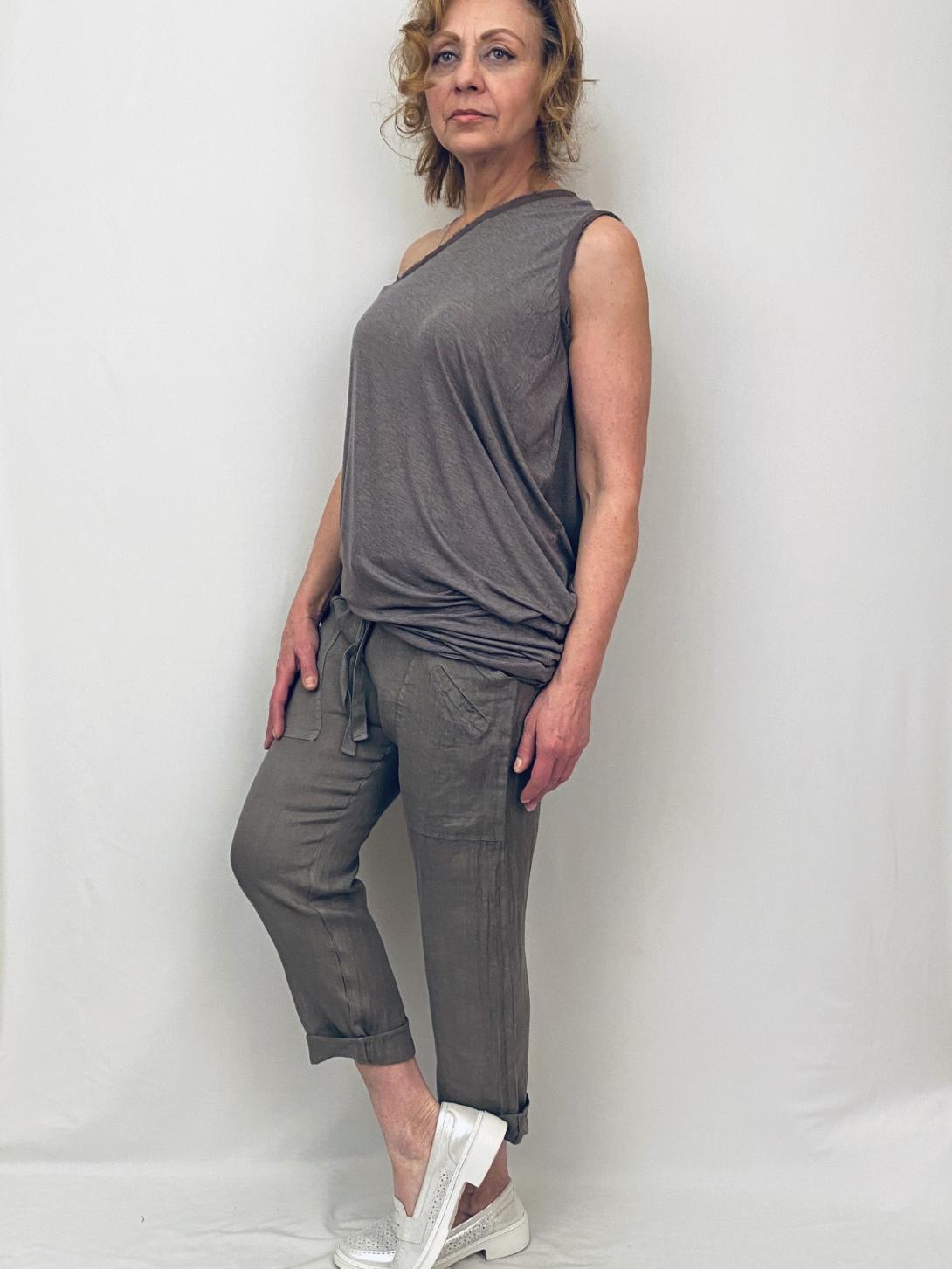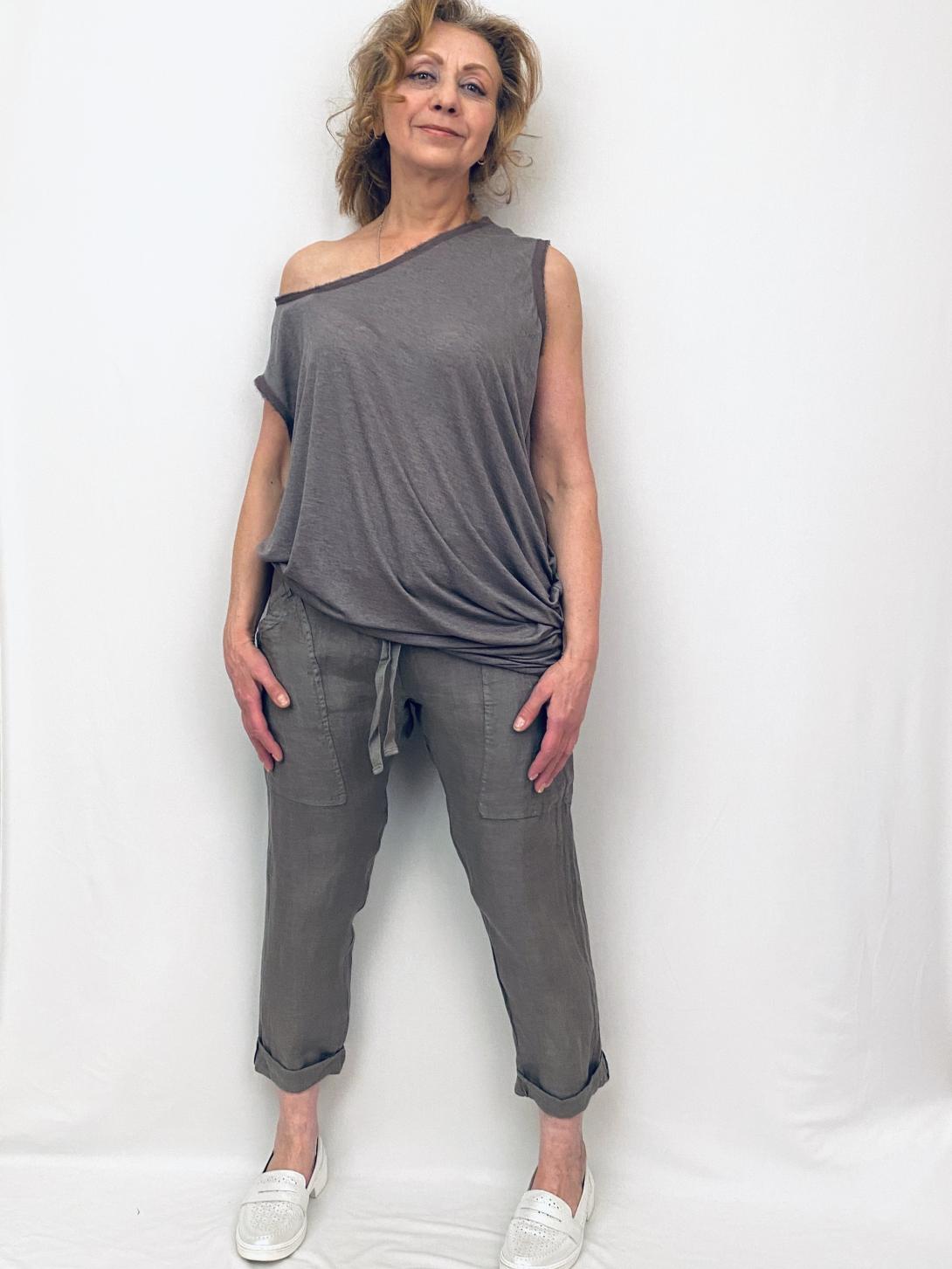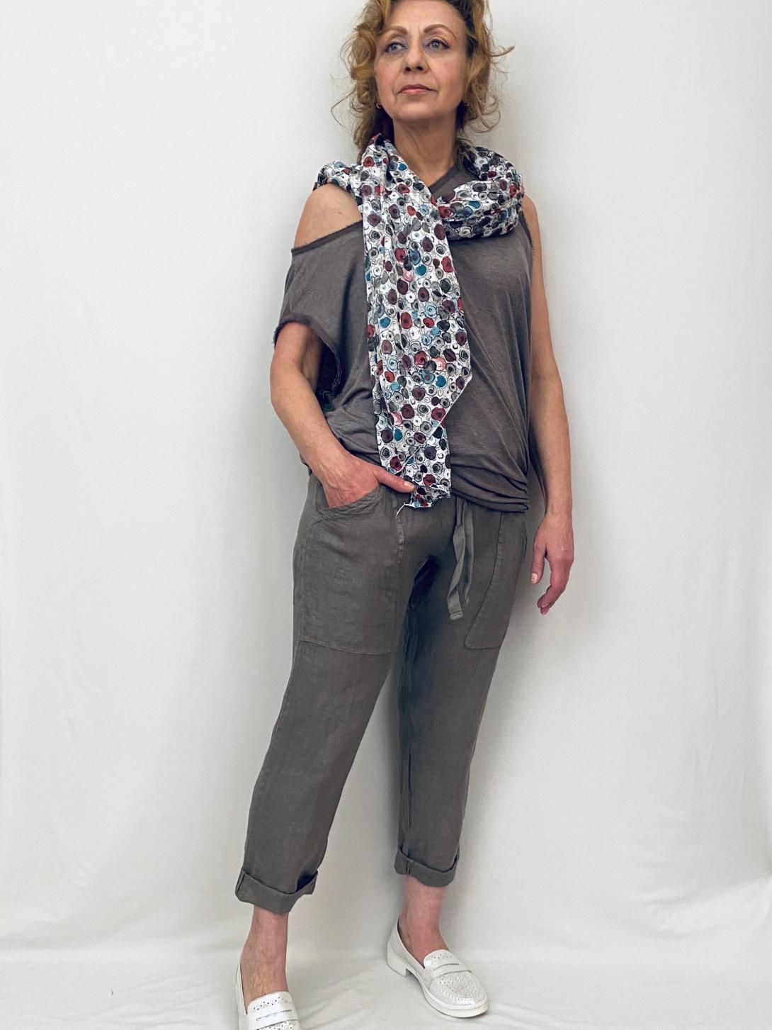 Асимметричный блузон в цвете fango. Отделка 100%шёлком.