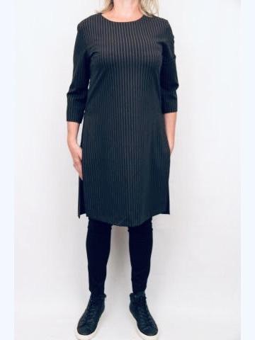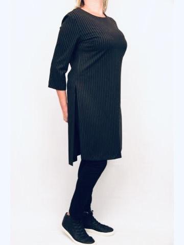 Модное платье с глубокими боковыми разрезами, которые удлиняют ноги. Платье-туника носят с плотными колготками или легинсами.