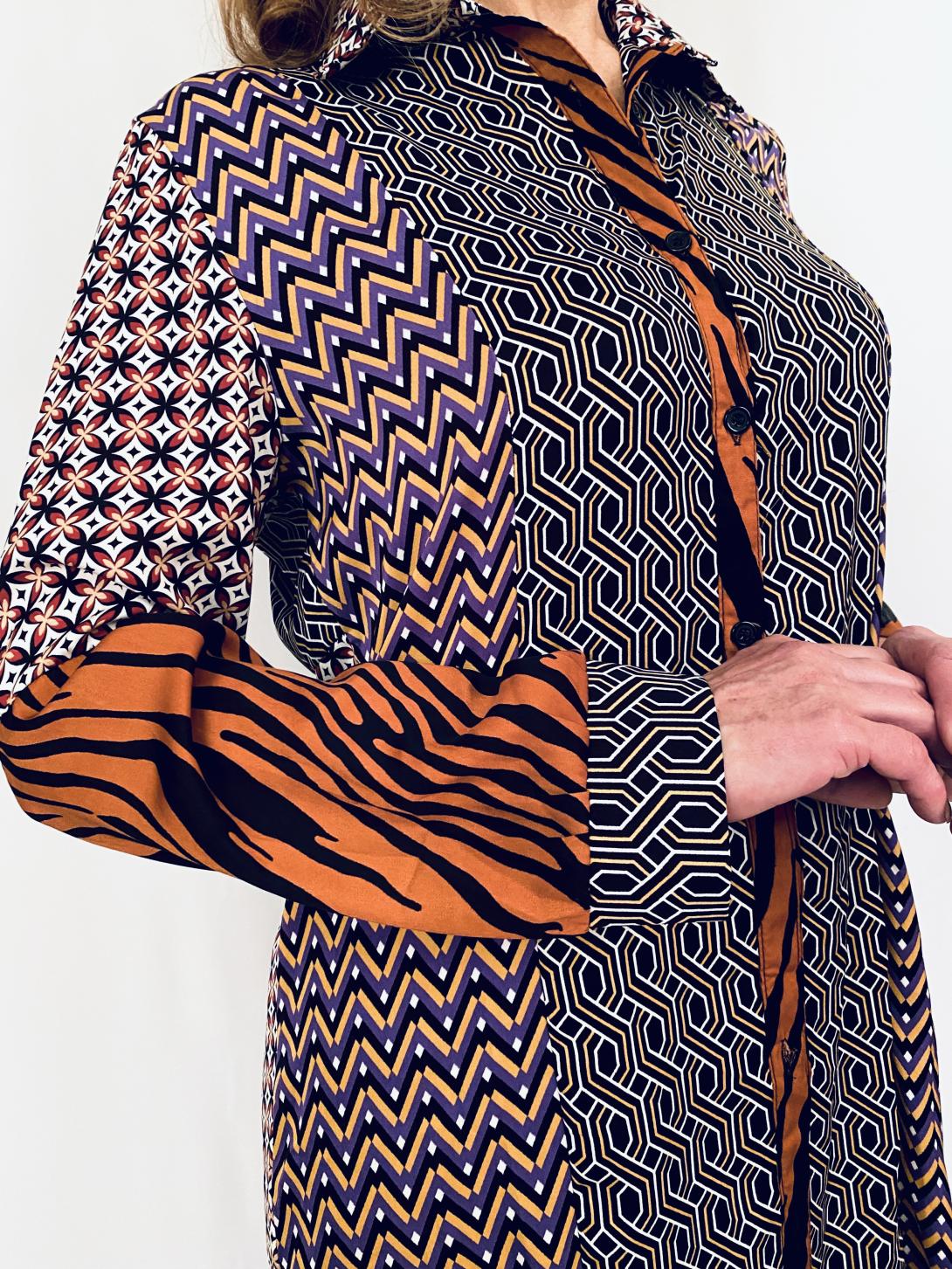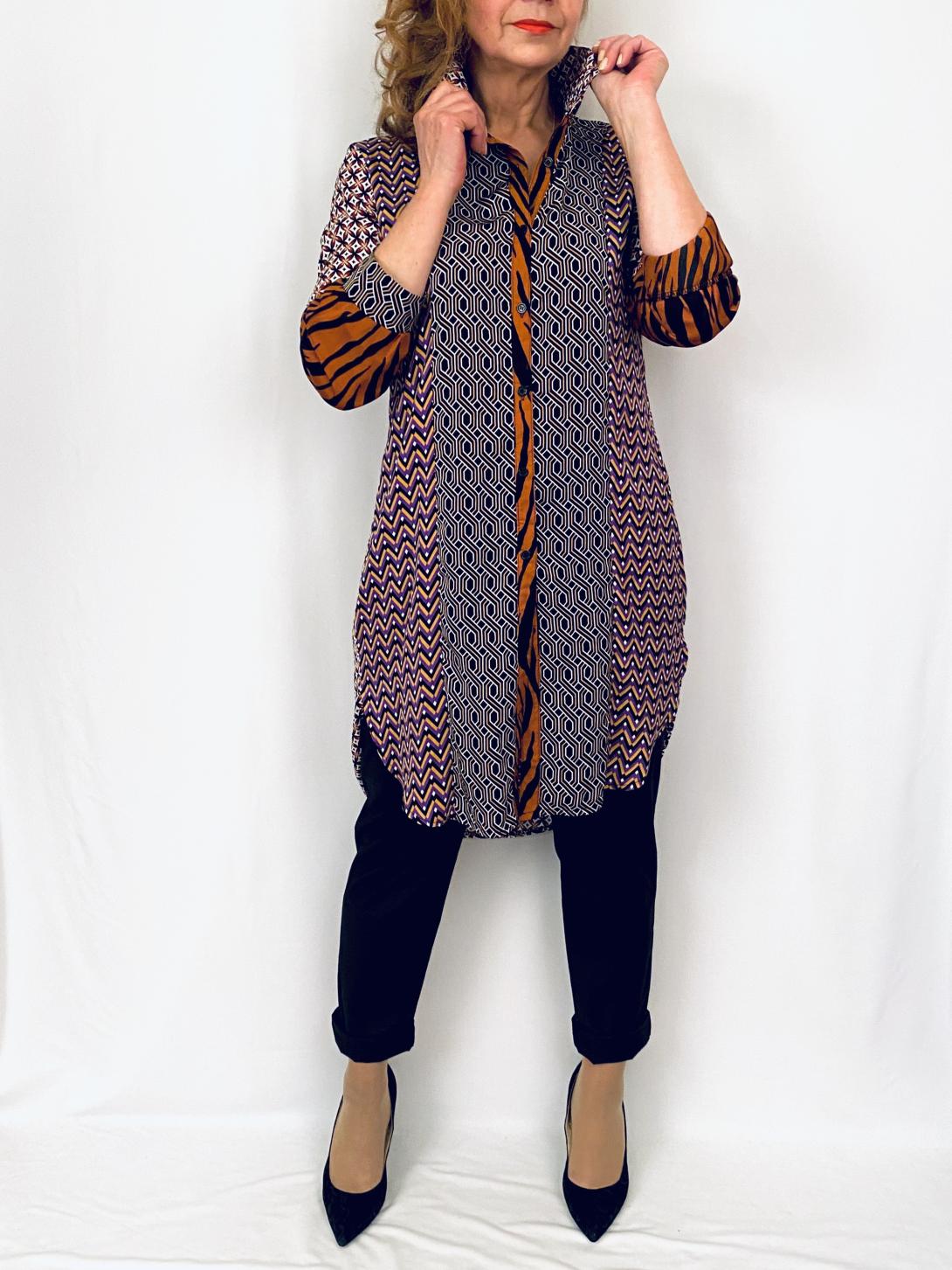 Туника с абстрактным рисунком и разрезами по бокам - стильный и комфортный выбор для повседневной носки.