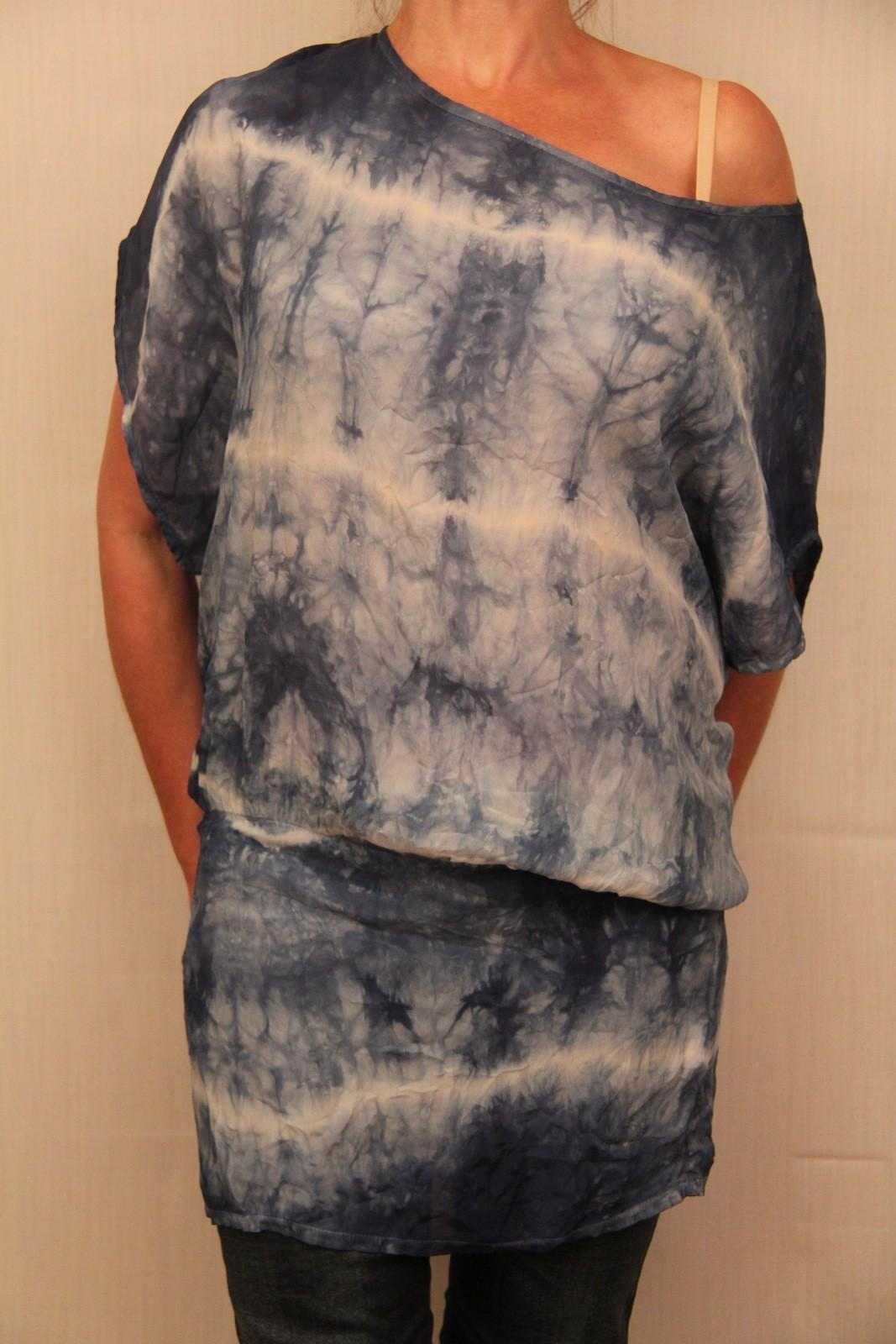 Стильная туника с вырезом -лодочкой. Тунику можно носить как бы на одно плечо. Модель идеально подойдёт для девушек с узкими бёдрами. Можно одеть эту тунику и как платье.
