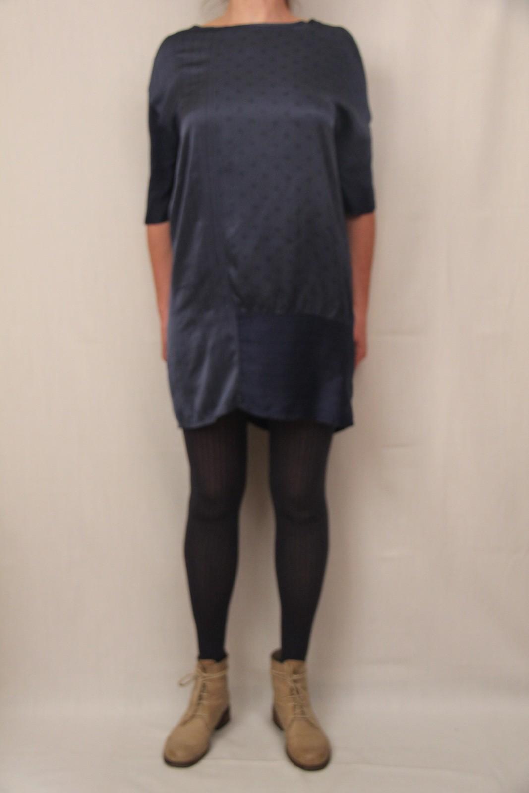 Платье-туника глубокого синего цвета в еле заметный горошек.